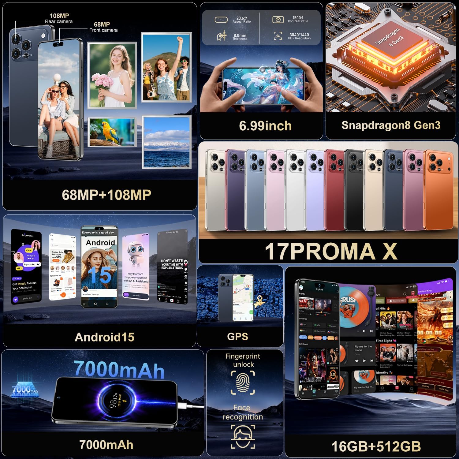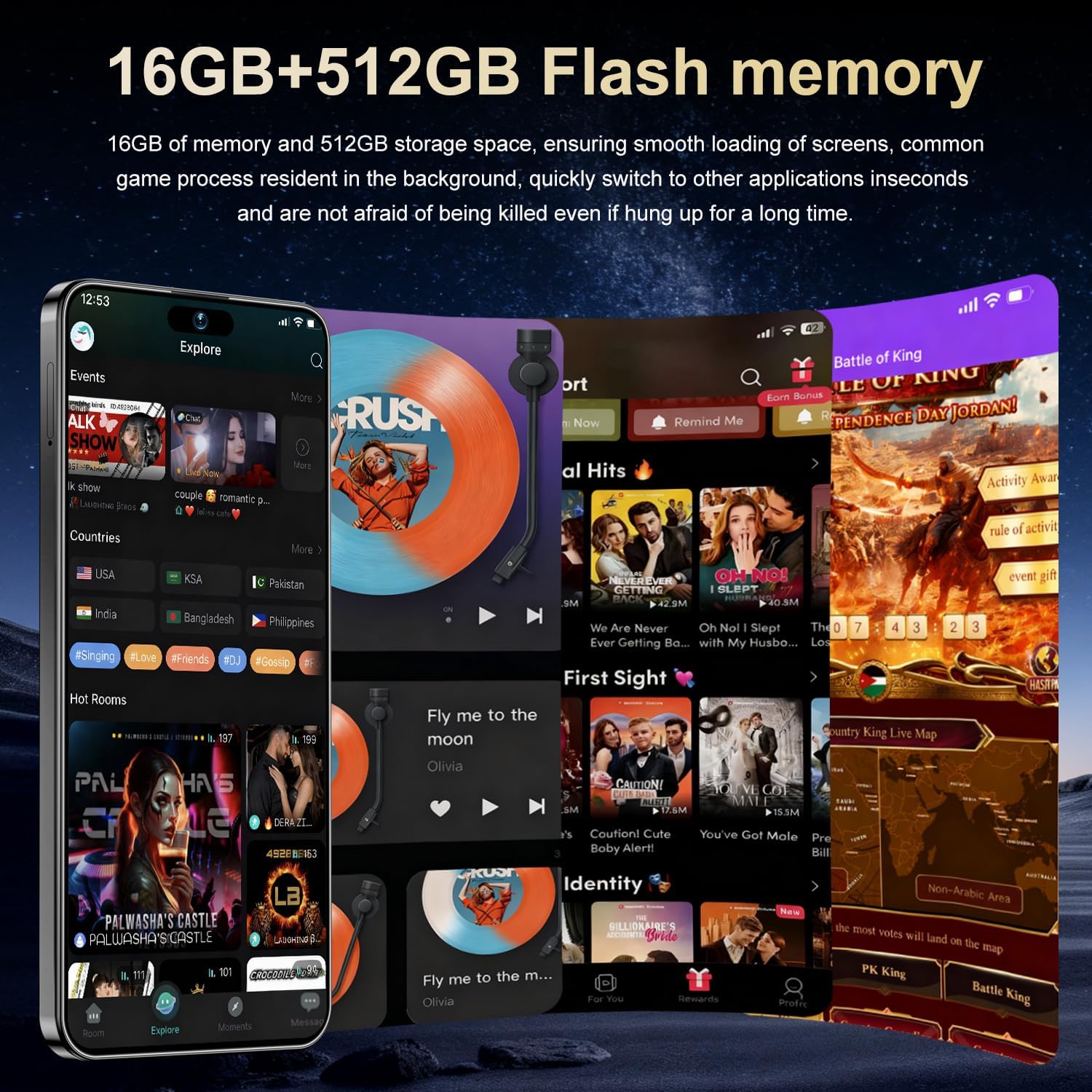 【Snapdragon8 Gen3】 Snapdragon8 Gen3 12 Core CPU with 16GB+512GB of memory is enough for you to use any application simultaneously, including watching movies and playing games. Install an additional storage card to easily store your favorite music, videos, and pictures.