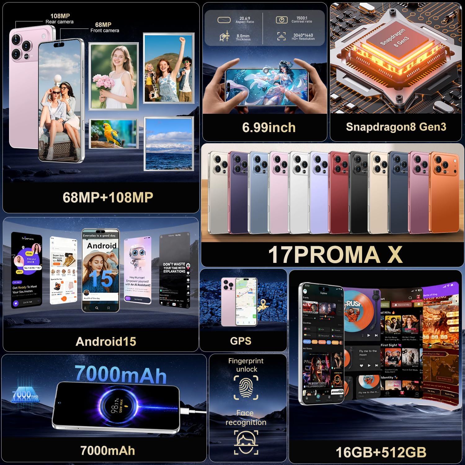 【Snapdragon8 Gen3】 Snapdragon8 Gen3 12 Core CPU with 16GB+512GB of memory is enough for you to use any application simultaneously, including watching movies and playing games. Install an additional storage card to easily store your favorite music, videos, and pictures.