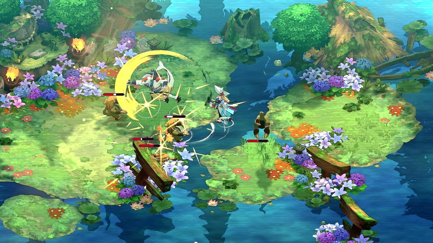 Each guardian has its own abilities and set of swords, making each combat style and guardian pair unique. Together, pave your way through colorful lands, conquer dungeons, and defeat Magatsu’s minions!