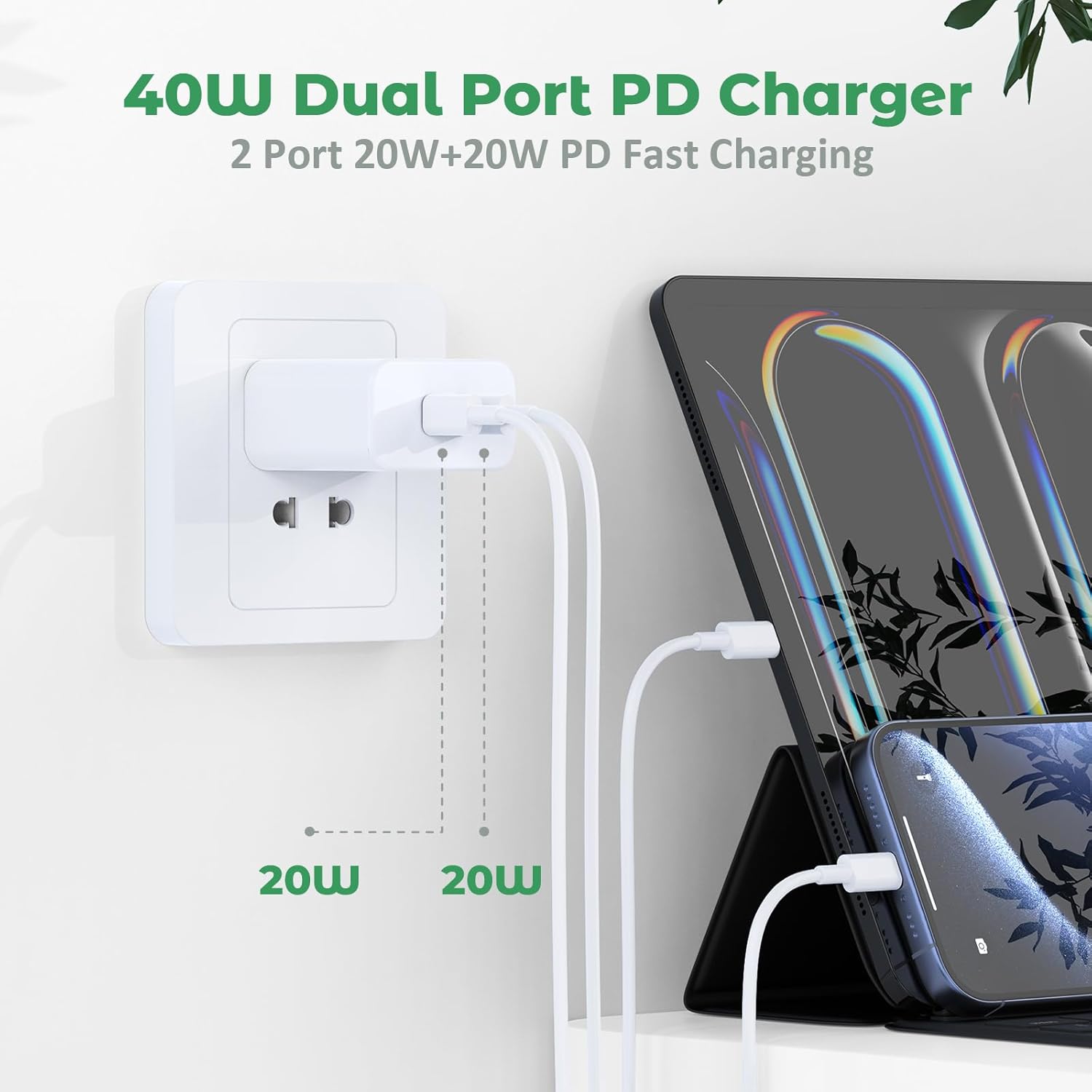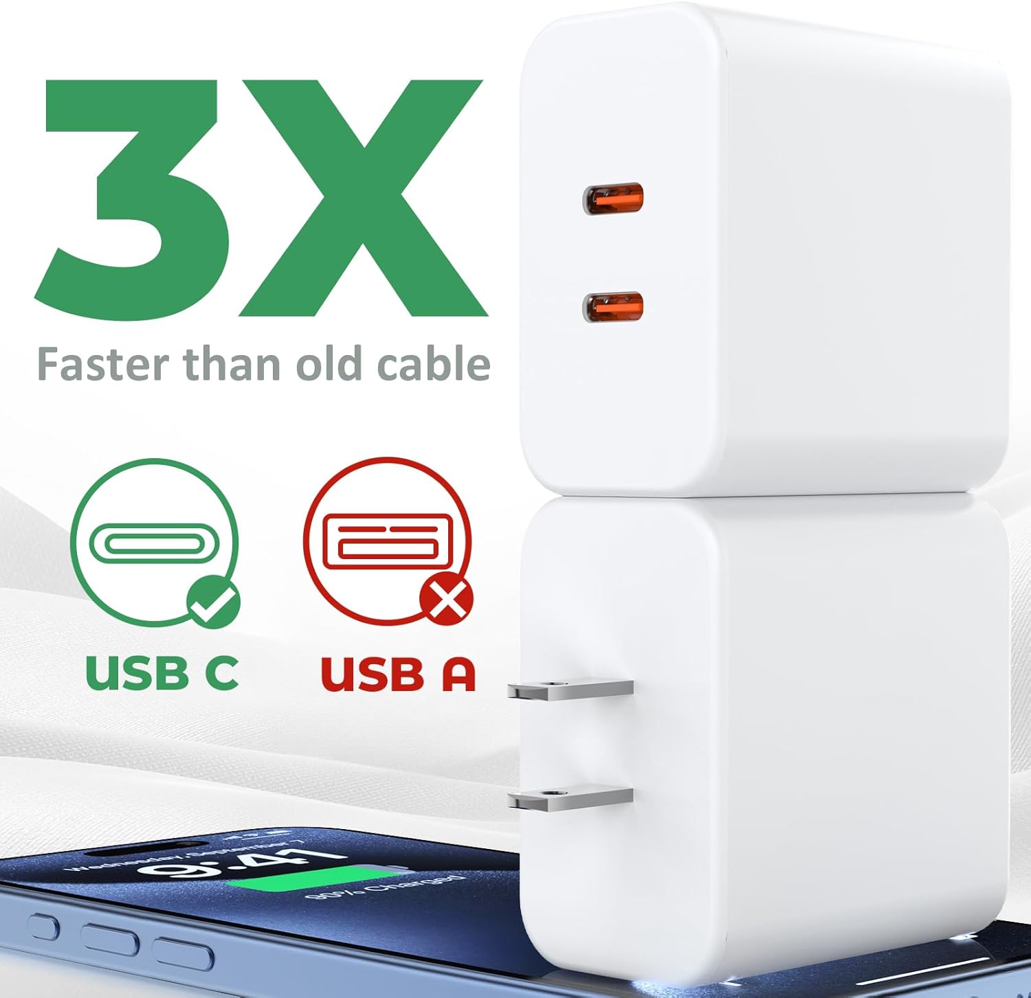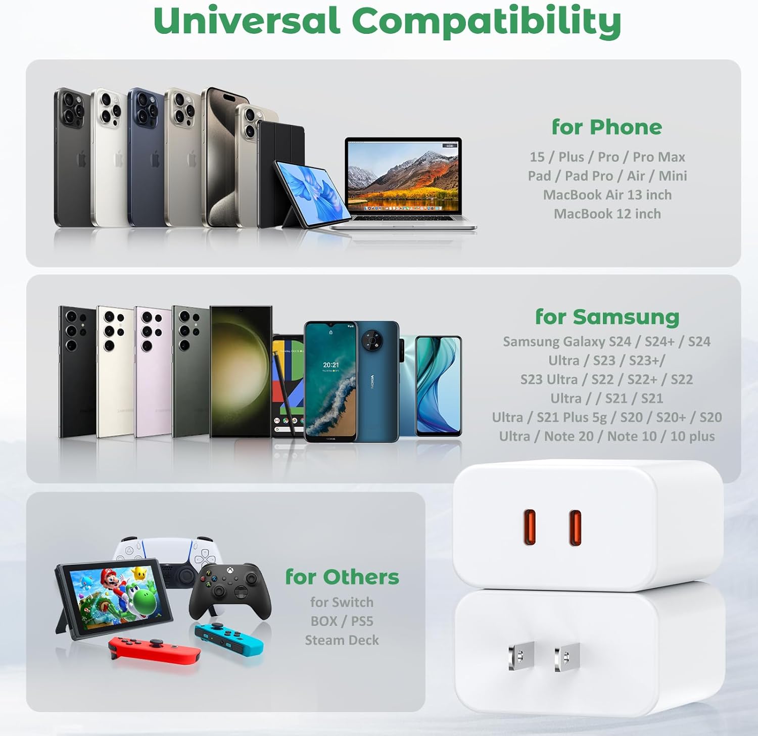 【For All Your Devices】: This type c charging block compatible with All smartphones and tablets, such as iPhone 16/15/14 Pro/14 Pro Max/14 Plus/13/13 Pro/13 Pro Max/13 Mini/12/12 Pro/12 Pro Max/12 Mini/11/11 Pro/11 Pro Max, iPhone XS/XS Max/XR/X/10/8/8 Plus/7/7 Plus/6/6S/SE 2020, iPad, iPad Pro, iPad Air, iPad Mini