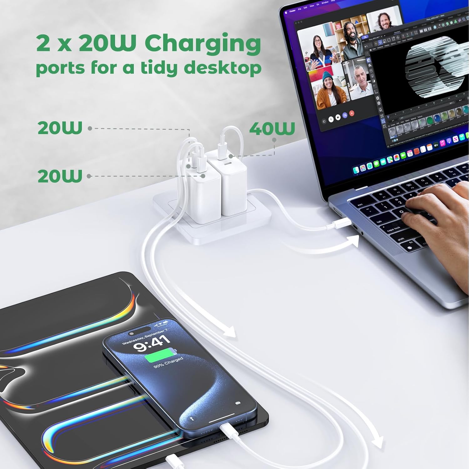 【USB Wall Charger Multiport】: New Upgraded Design – one charger block with Dual USB-C ports. Allow users to charge phone, tablet, laptop and headphones simultaneously to minimize waiting time