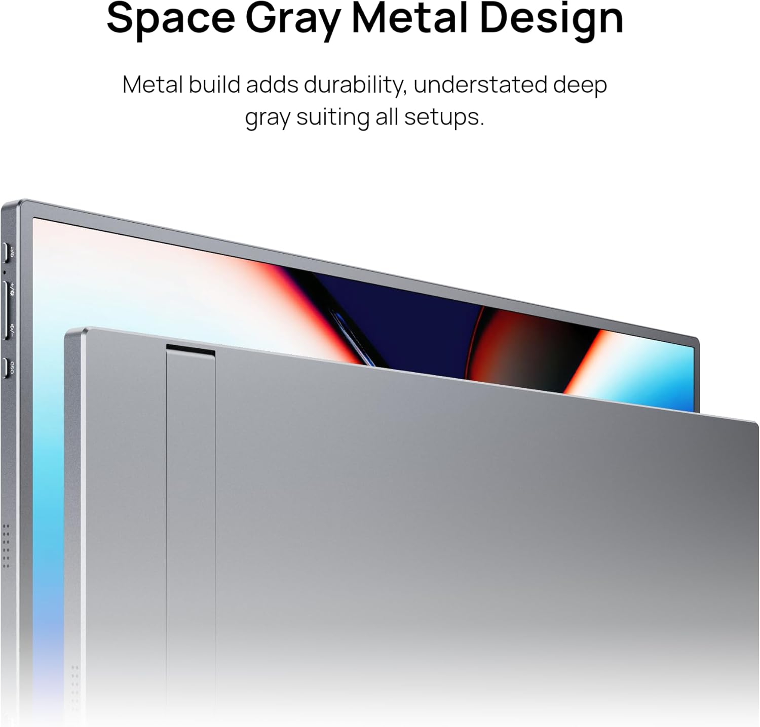 [Designed for On-the-go Convenience] Just 2.16lb in weight, with a 0.36 inches slim profile and a narrow bezel that maximizes screen space. The integrated stand eliminates the need to carry an extra case to support the monitor, simplifying your portable setup. Ideal to be packed with laptop, convenient for on-the-go use