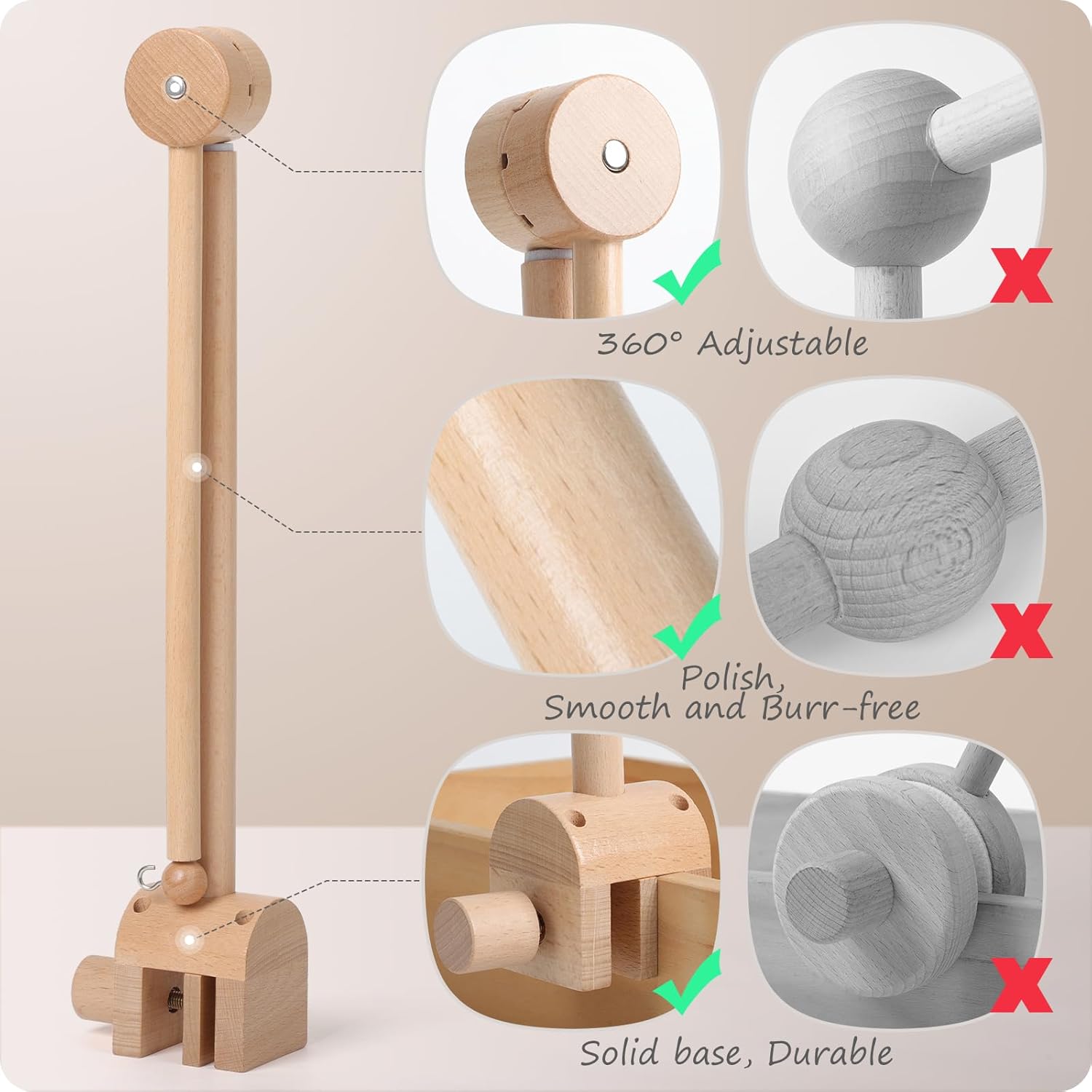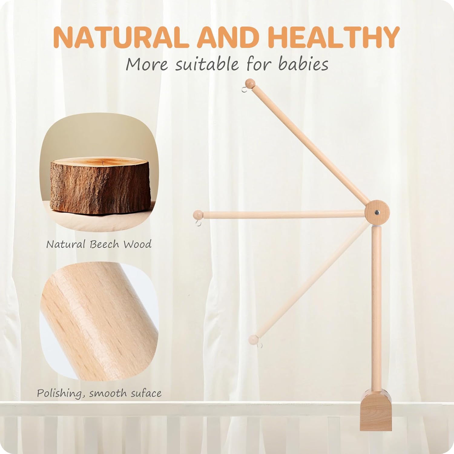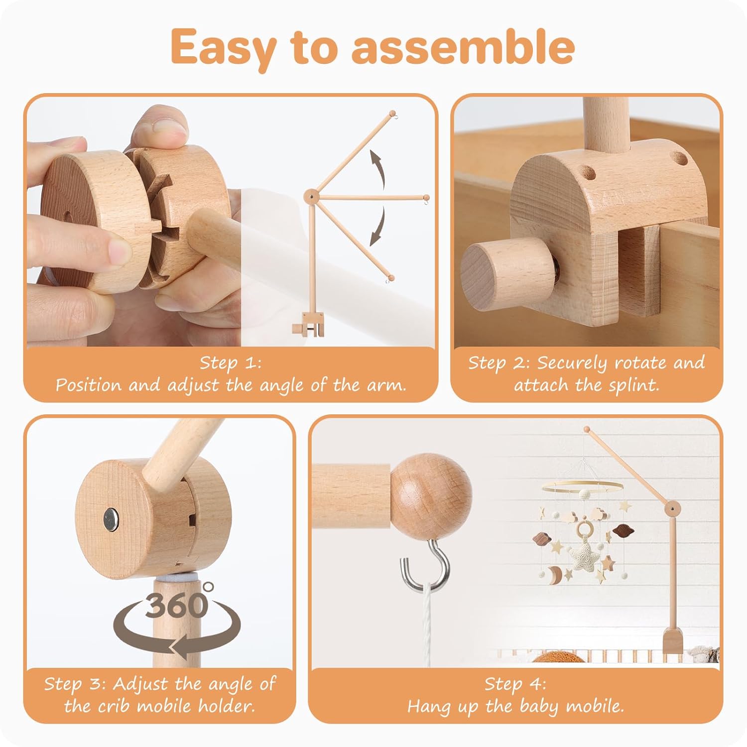 Easy to Install: Our hands are the best tools! This crib mobile hanger is incredibly easy to connect and assemble in just minutes. Simply rotate it, attach it to the stand base, and use the knob to secure the crib mobile arm to the bedside. No need for complicated tools!