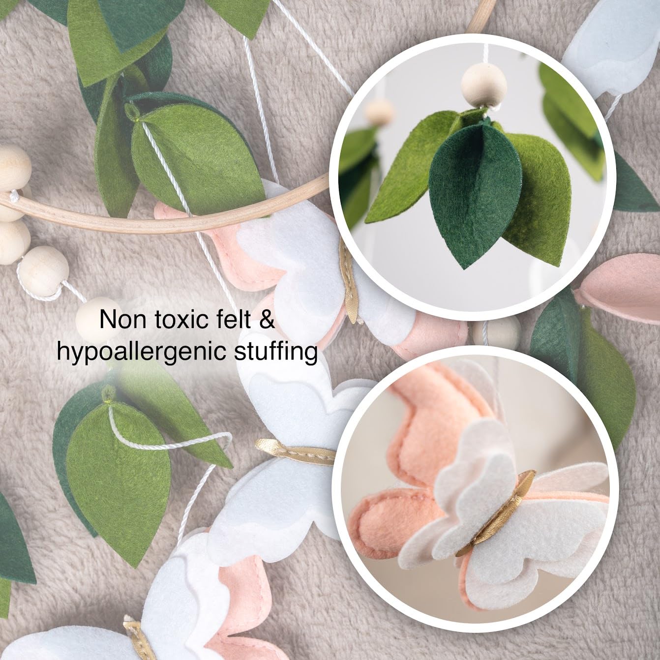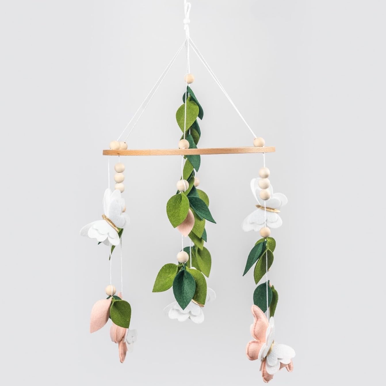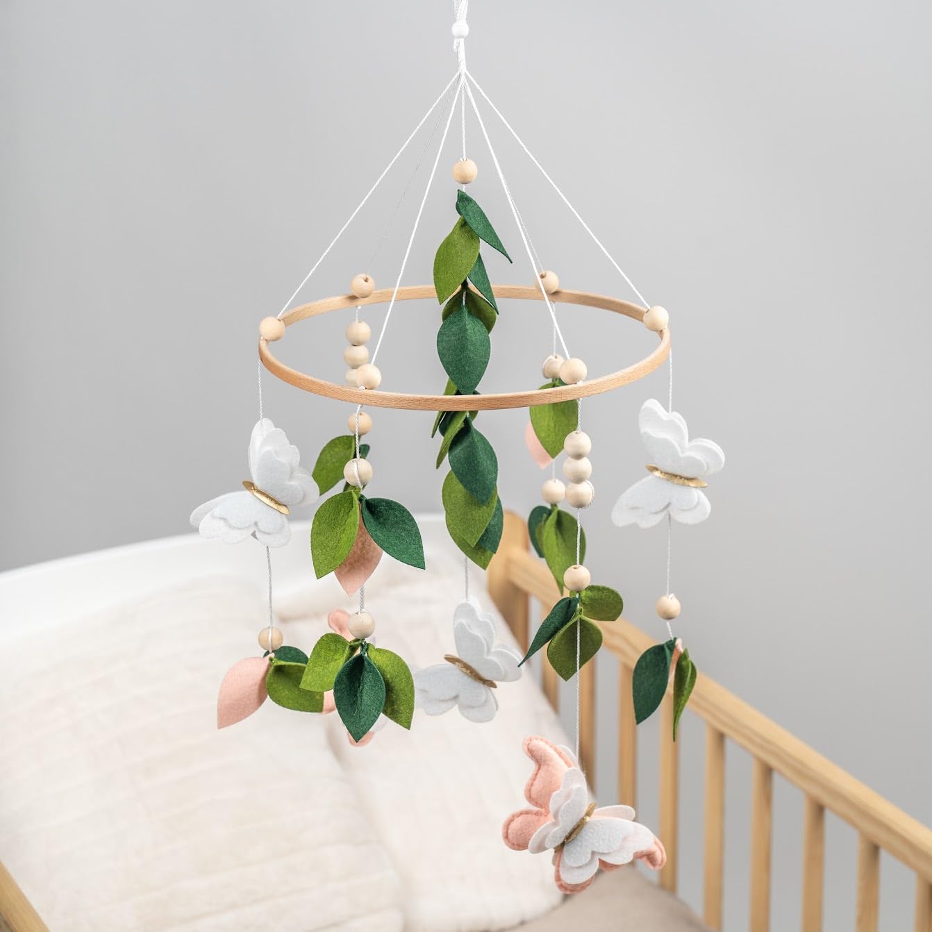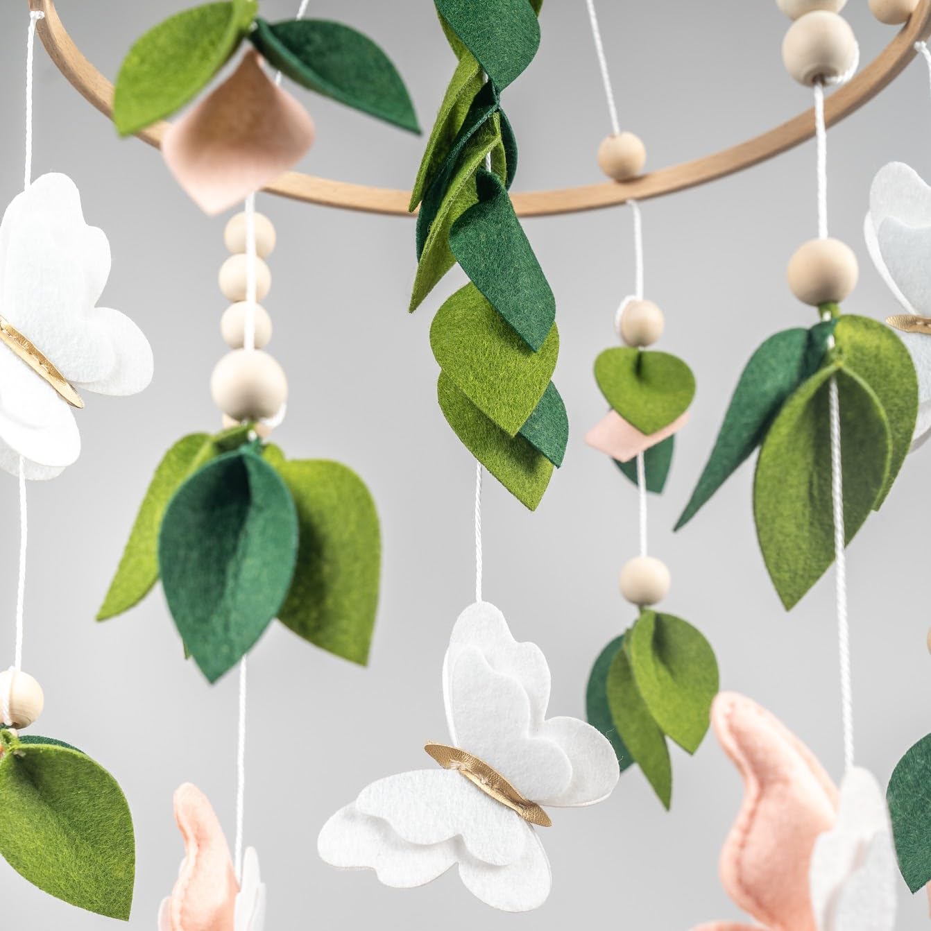 🍃 Natural – Bring a touch of the outdoors with this flower crib baby mobile with butterflies in shades of pink and a brightness of white for a fresh feel modern baby girl nursery to go with many styles