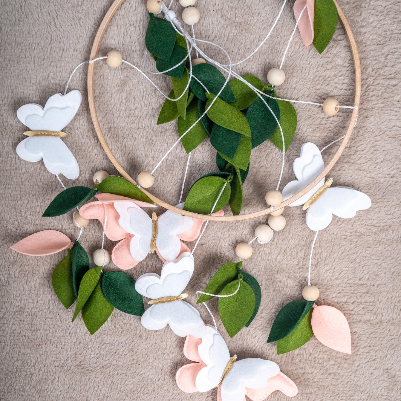 🍃 Beautiful – this felt baby mobile is made to the highest standard using specifically chosen natural colours to create this stunning pink, white and gold butterfly hanging mobile