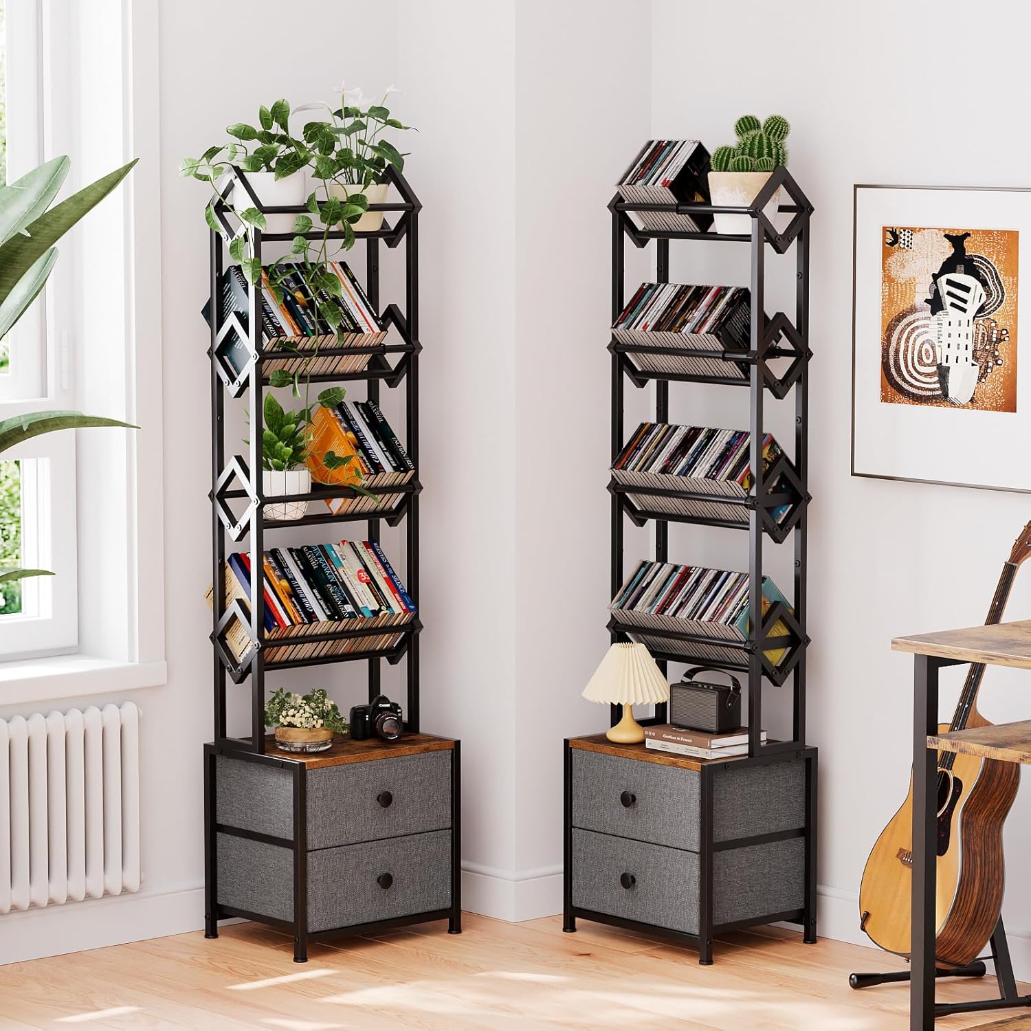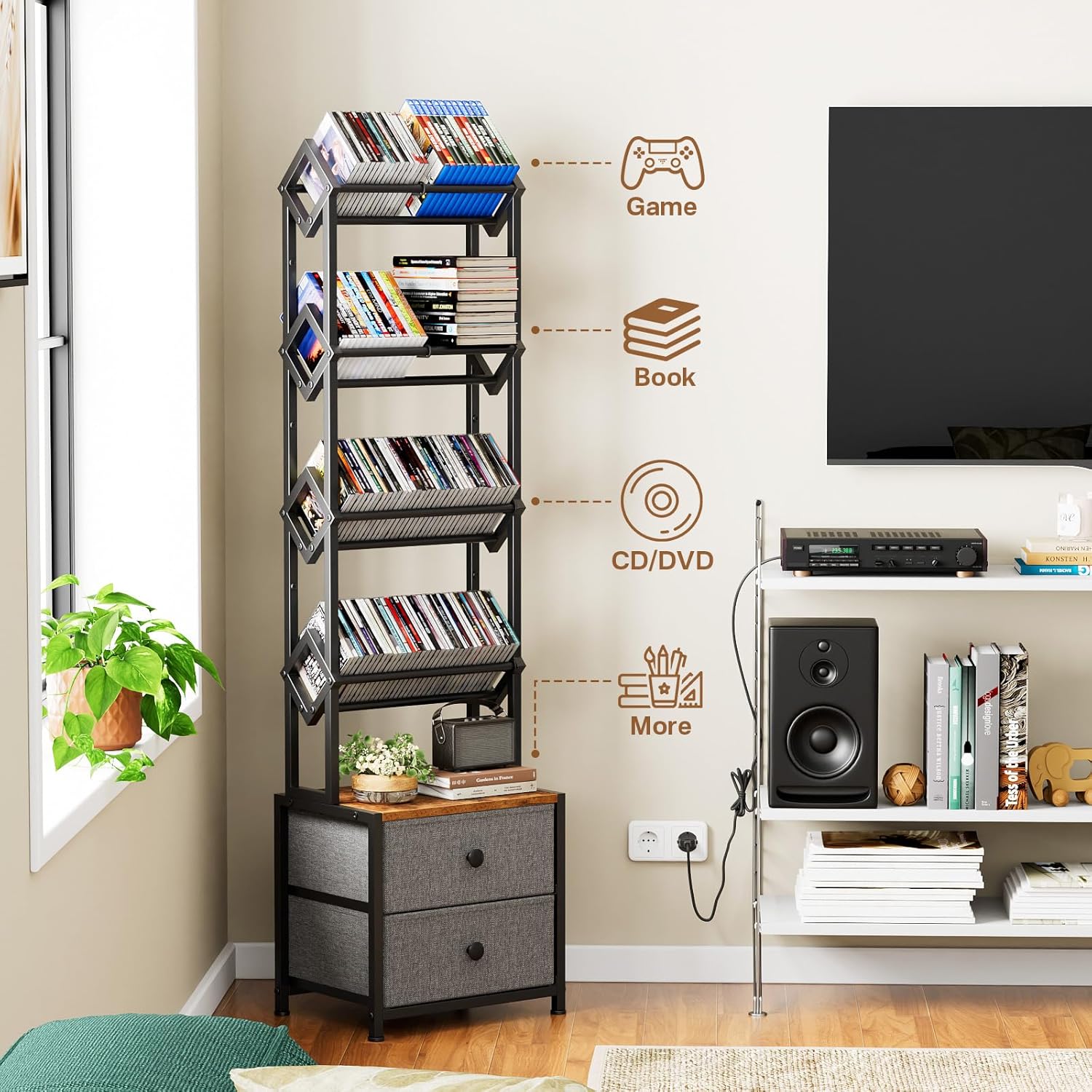 【Angled Display & Easy Access】 Showcase and organize your media collection effortlessly with our unique tilted shelves. The sloped design allows you to view titles at a glance, making it simple to find and select your favorite CDs, DVDs, books, and games without shuffling.