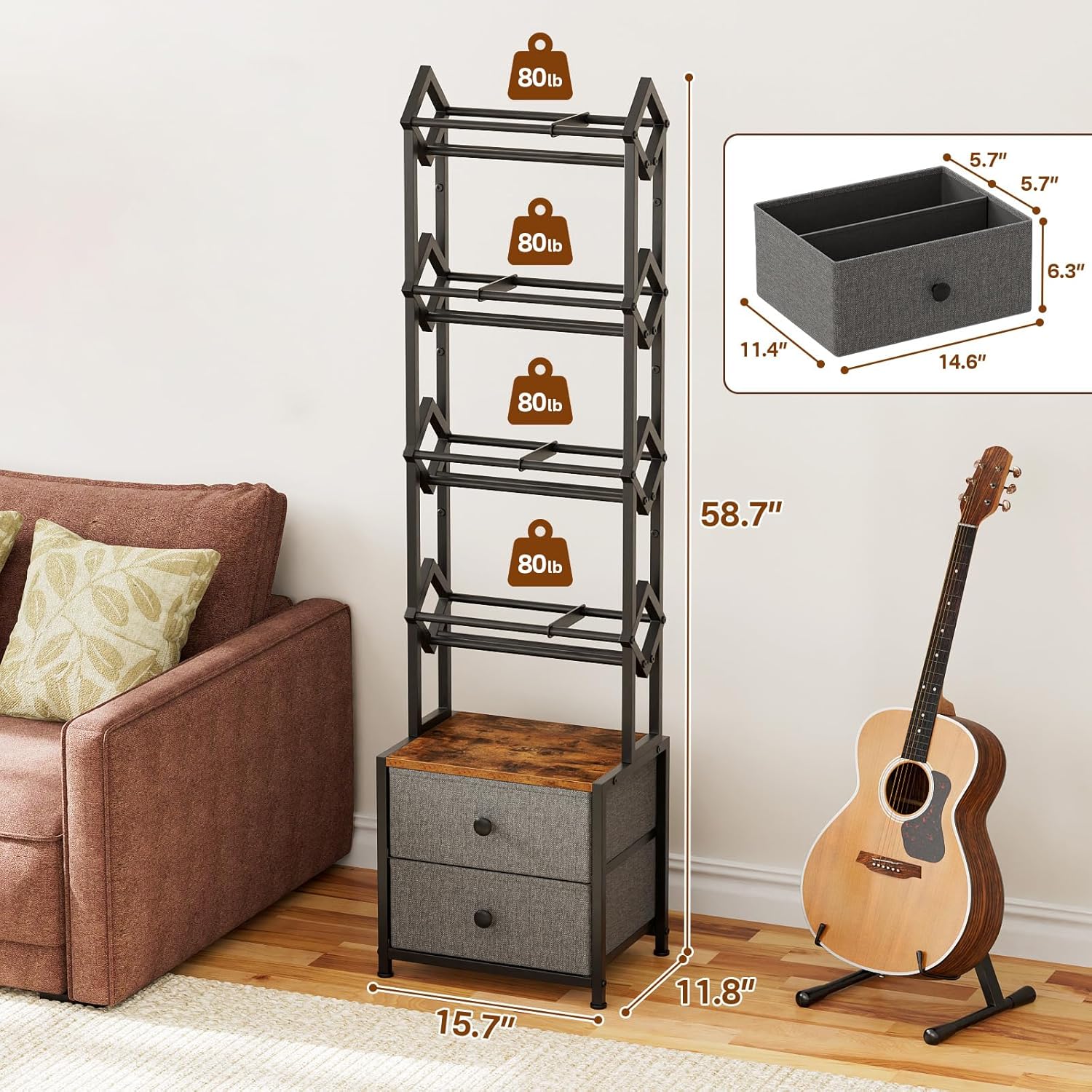 【Superior Capacity & Space-Saving】 This 5-tier storage rack provides a large capacity for all your media needs. The clever vertical design and compact 15.7” x 11.8” footprint save valuable floor space, making it perfect for apartments, small living rooms, or home offices.
