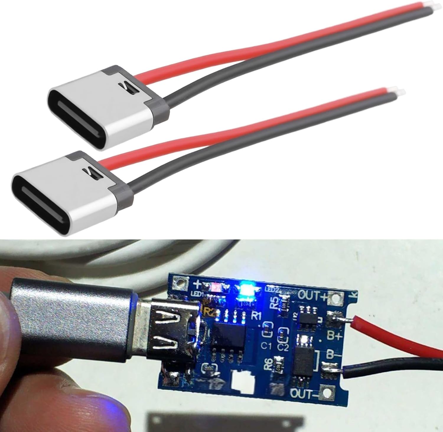 Create idea 20pcs USB Type-C 2 Pin Plug Welding Wire Cable Repair Socket 9 x 9mm for Mobile Phone Charging DIY Retrofit Charging Port