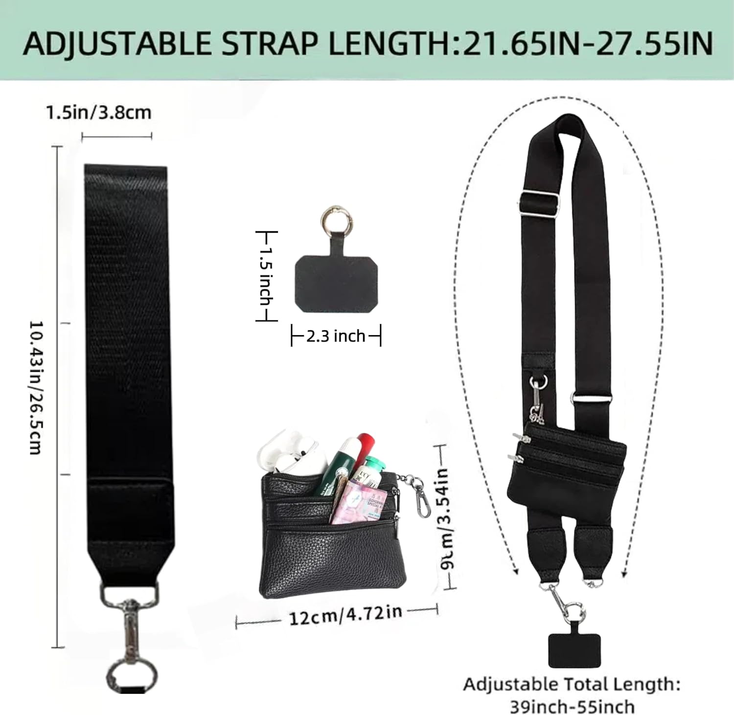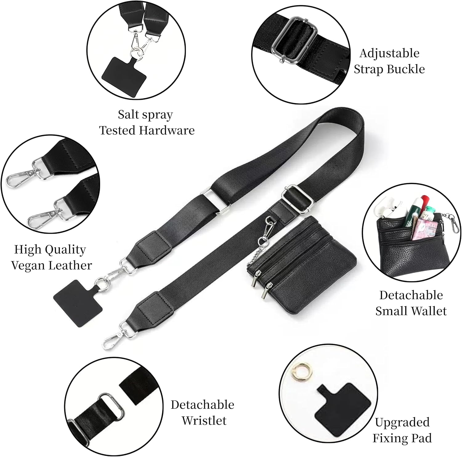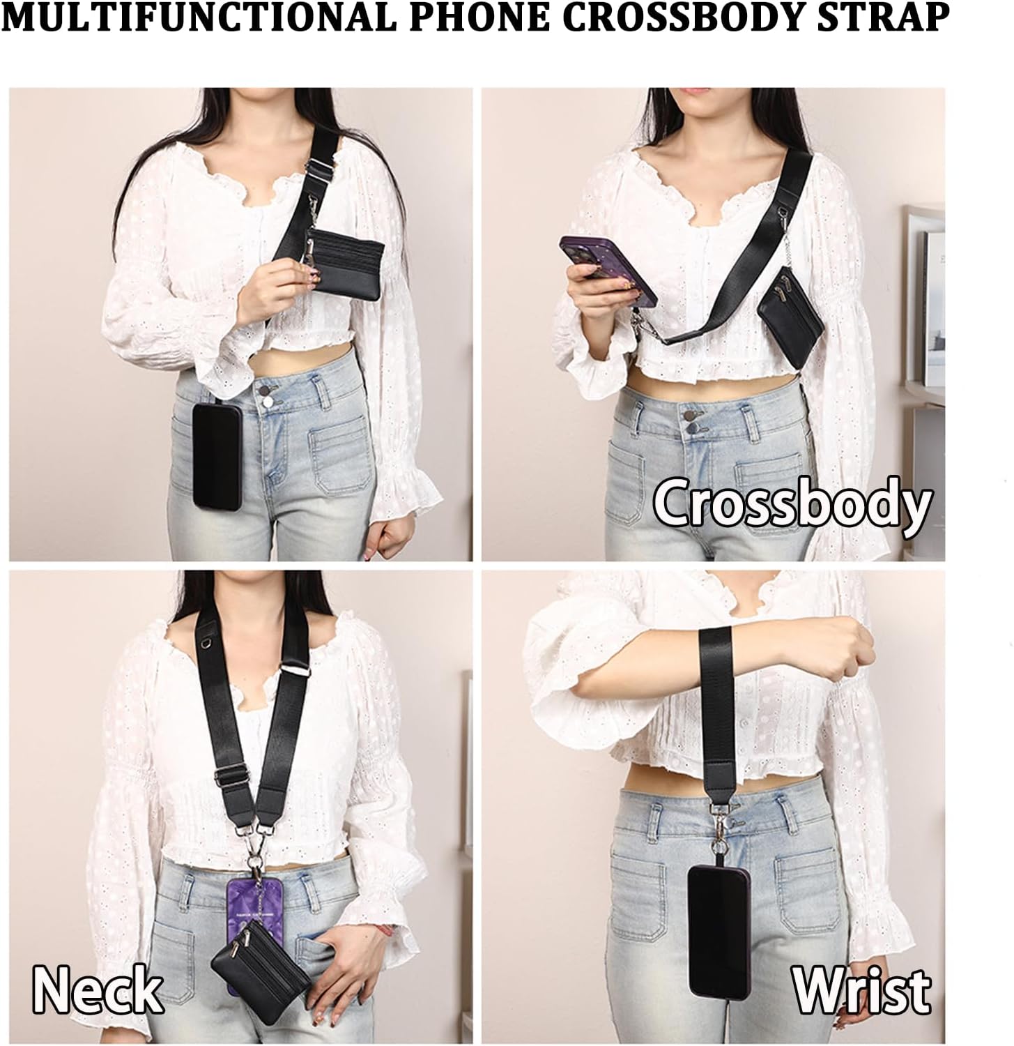 Phone Strap with Zippered Pouch: The cross body phone strap with wallet can converts to a crossbody bag, wristlet, or use as a stylish strap on your wallet. Suitable for all smartphone models, allowing you to reach your phone with ease
