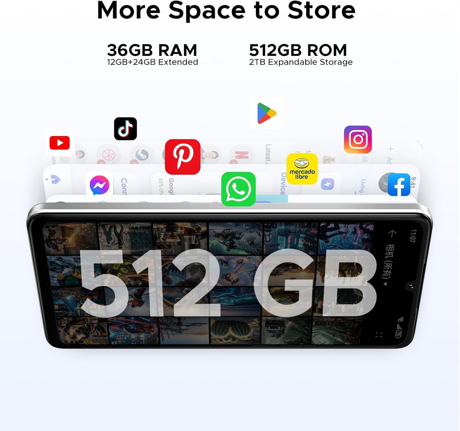 【𝟑𝟔𝐆𝐁 𝐑𝐀𝐌 + 𝟓𝟏𝟐𝐆𝐁 𝐑𝐎𝐌/𝐄𝐱𝐩𝐚𝐧𝐝𝐚𝐛𝐥𝐞 𝐭𝐨 𝟐𝐓𝐁】DOOGEE Note 59 Pro+ 5G smartphone is equipped with 36GB RAM (12GB + 24GB virtual) and 512GB of ROM, offering massive storage space for thousands of HD photos, videos, and apps. With uMCP technology, enjoy ultra-fast data transfers and seamless performance. Whether you’re gaming, editing, or streaming, this powerhouse handles heavy apps, 4K videos, and large files with ease.
