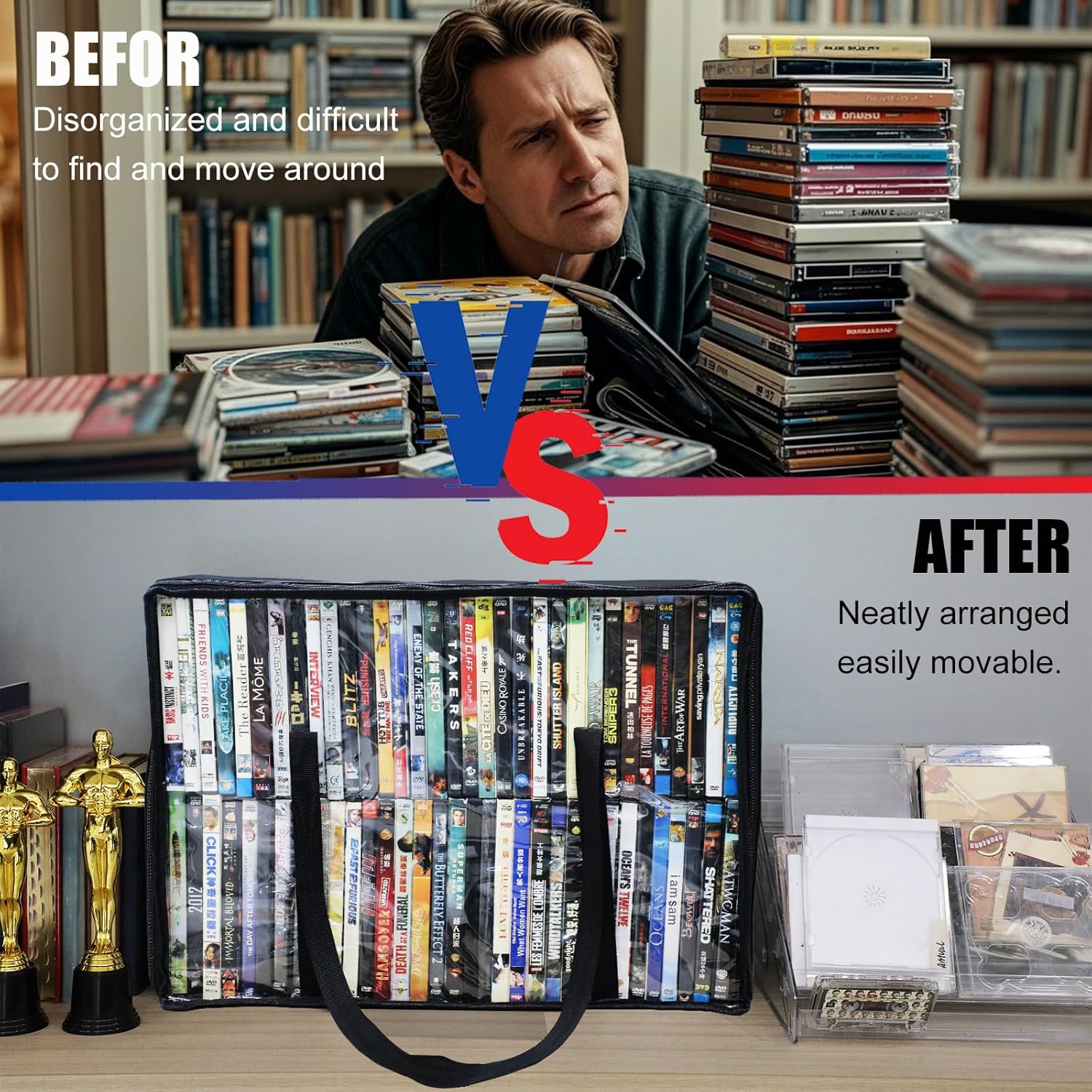 Extra-large Capacity: Each Blu-ray storage bag can hold up 90 bluray or 60 DVD,120 CDs,The 2-pack set can easily hold all your DVDs and CDs. Its efficient design keeps them neatly organized without taking up much space