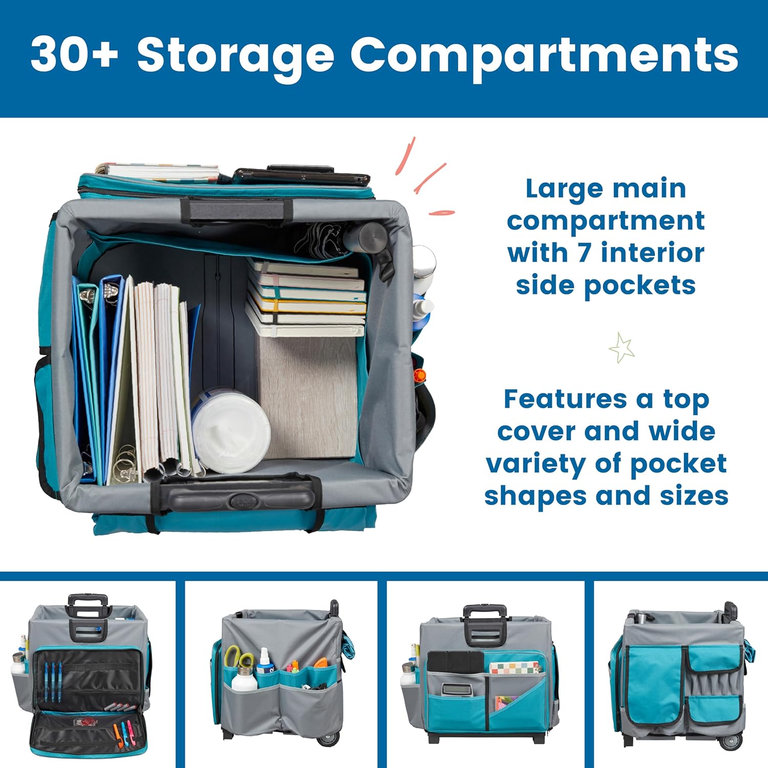 Storage Organizer: The removable saddlebag-style canvas cover fits securely over the cart, offering over 30 storage compartments, perfect for transporting supplies from home to school or the office