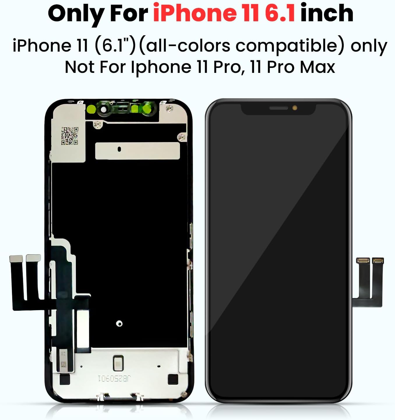 Perfect iPhone 11 Compatibility: This 3D touch LCD screen replacement fits exclusively for the 6.1 inch iPhone 11 ( fits for models A2111, A2223, A2221), and is (NOT compatible with XR, 11 Pro Max, 12, or other models). Please confirm your model in (Settings–General–About–Model Name) before purchasing to ensure a perfect fit and full functionality. If you found out the screen is not compatible with your phone,please contact us.