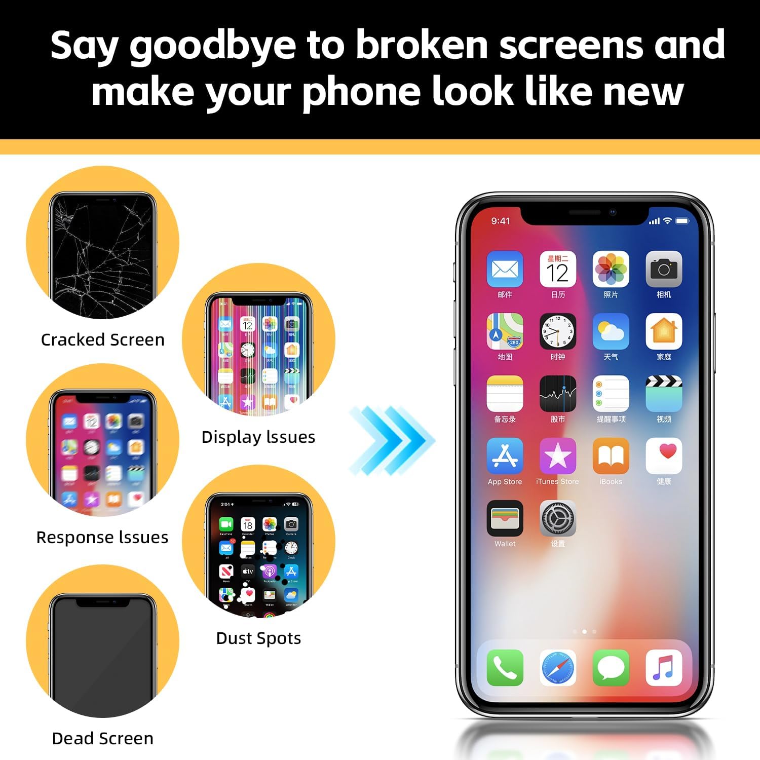 Complete Professional Repair Ki: This package includes a premium LCD display digitizer, professional repair tools, a waterproof adhesive sticker to restore moisture resistance, and a high-quality tempered film. This provides you with everything needed for a successful repair that protects your phone from water and scratches, giving you the confidence of a professional-grade result.
