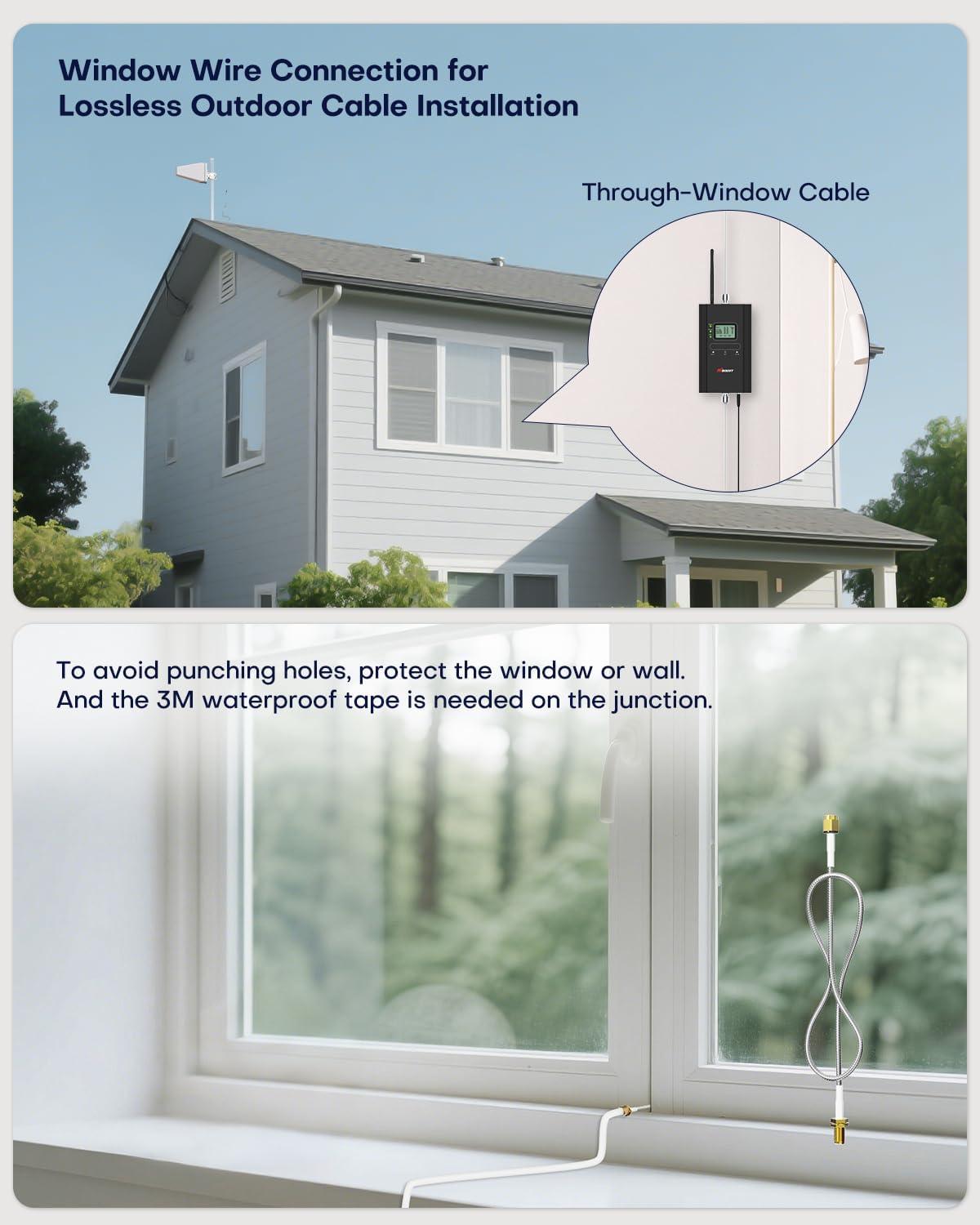 📶 【HIBOOST APP ASSISTED INSTALLATION】HiBoost App & LCD helps fine tune best output and see how strong the signal is; No drills necessary since the window wire can be fed through the window bottom to connect the outdoor antenna and the cell signal booster; Easily install your booster with the help of step-by-step videos and instructions through our App