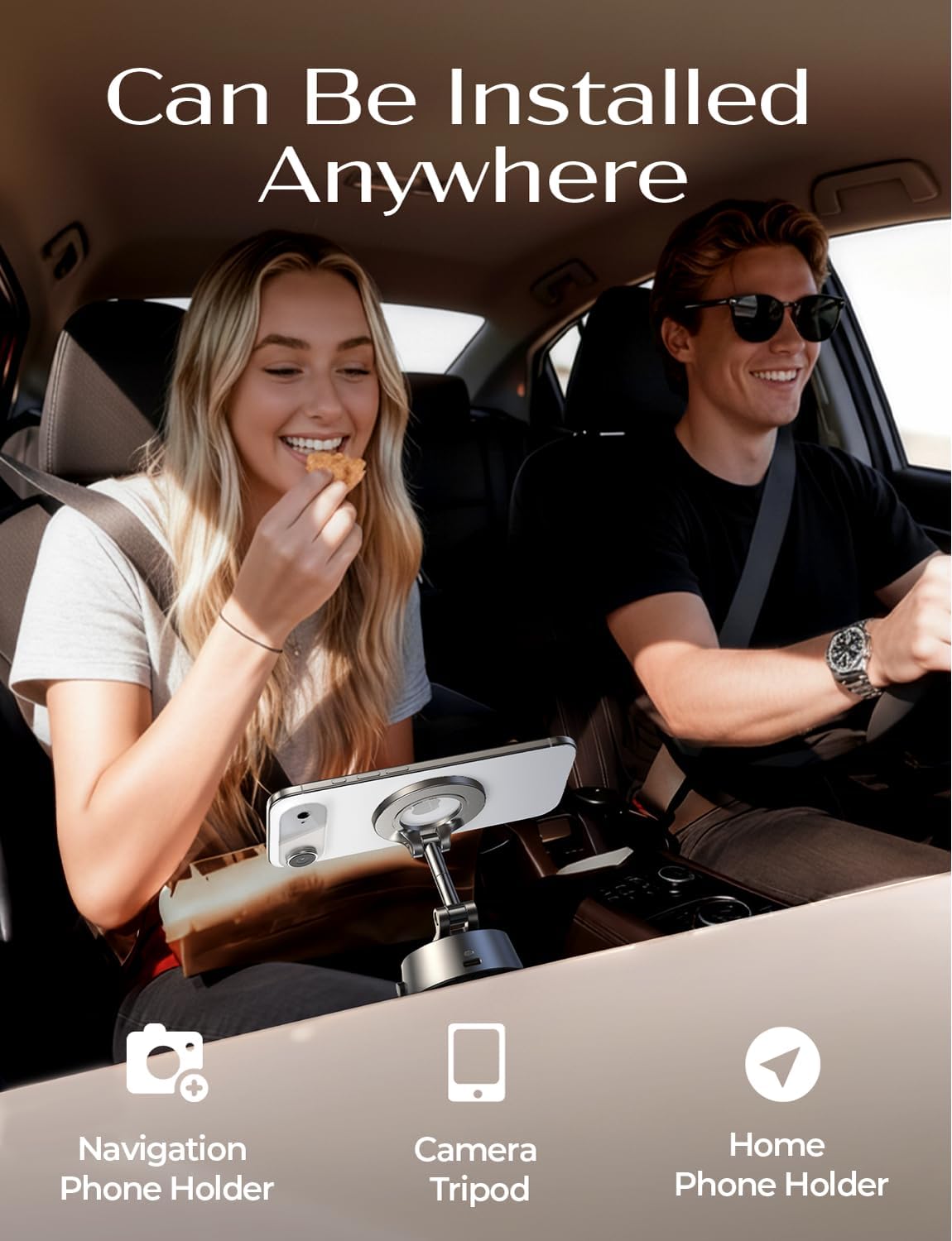 【4-Axis Flex Adjustability】Enjoy effortless 1440° total rotation of this magsafe car mount for the perfect viewing angle in any seat. This multi-axis design lets you tilt, swivel, and fine-tune your phone’s position with precision—ensuring clear visibility, safer interactions, and a truly custom driving setup.
