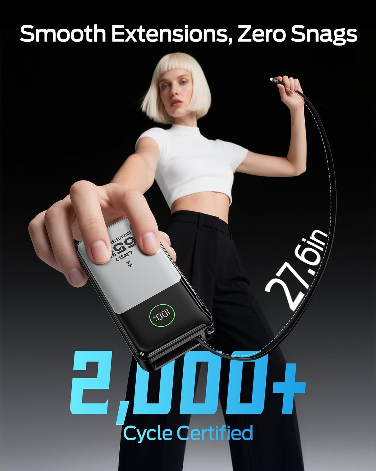3-in-1 Power Bank – Your all-in-one charging solution! This 20,000mAh power bank features 65W fast charging, a built-in 70cm(27.6in) USB-C cable, and foldable plug. Charge phones anywhere – no extra cables needed. Compact and travel-ready for on-the-go power