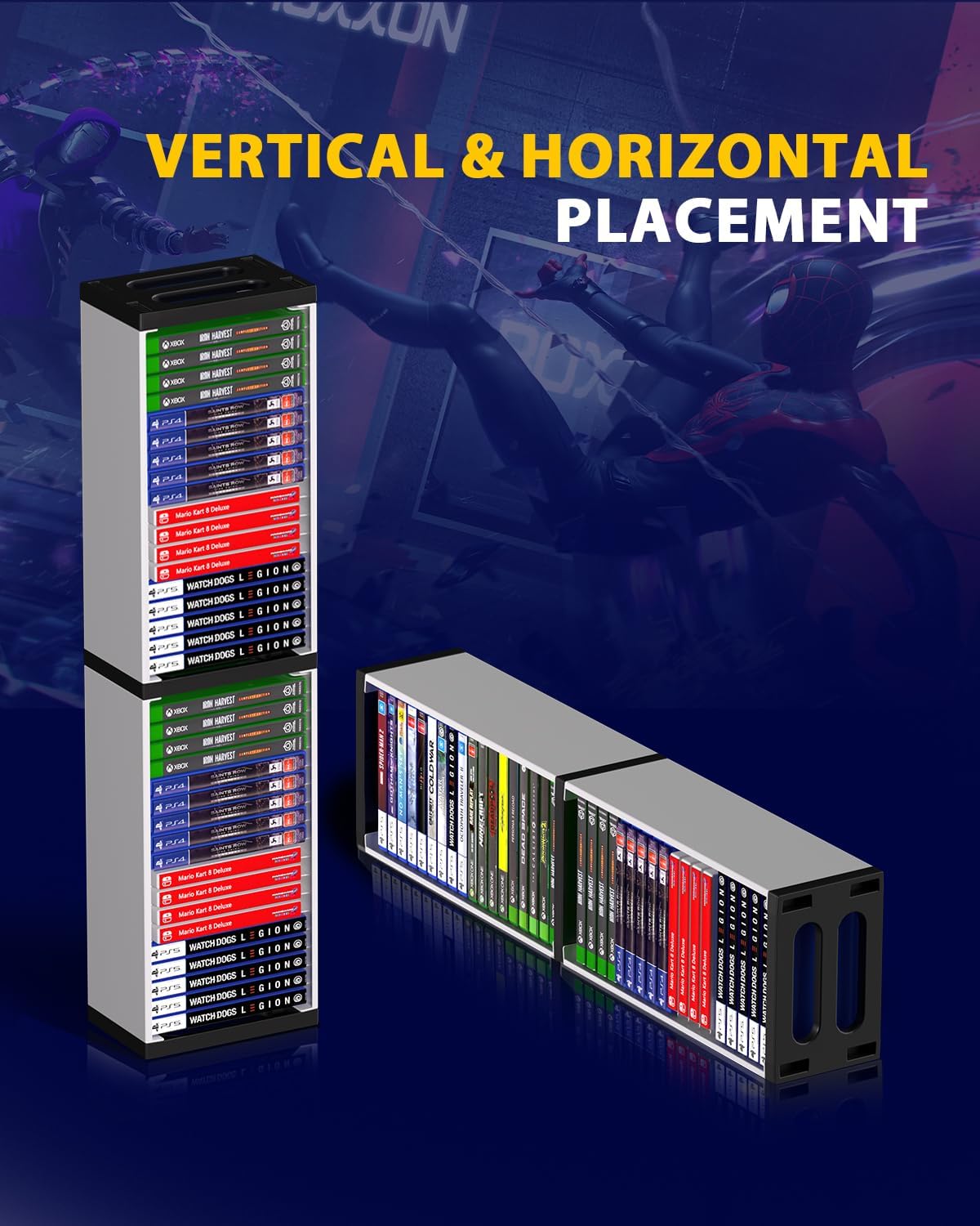 Keeps your games neatly arranged and easy to find. No more searching through piles of game discs. Plus, it can also be placed horizontally for additional display options