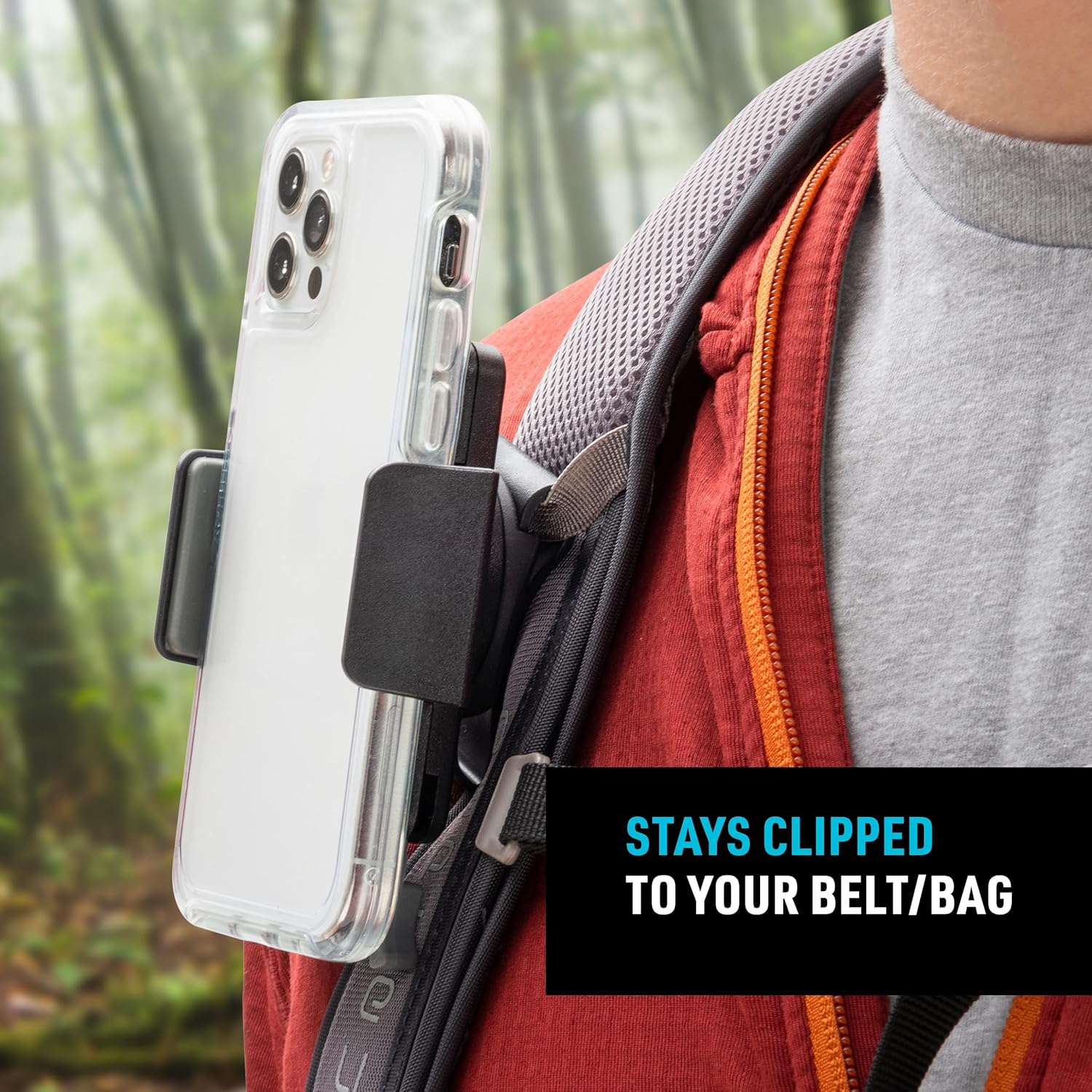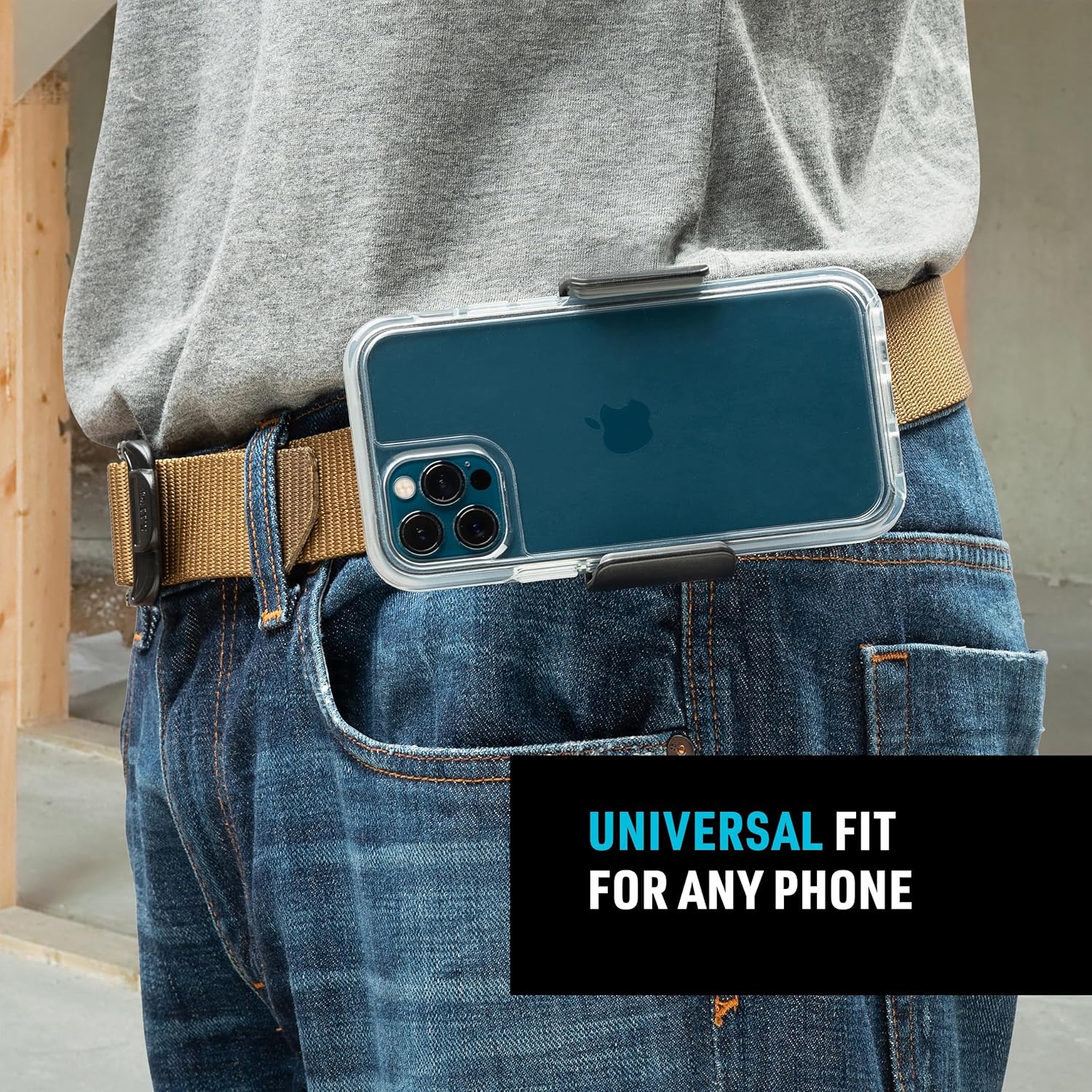 Rotating Clippable Convenience: This smartphone holder’s rugged 360-degree rotating clip attaches firmly to belts and straps up to 2.1” wide, offering versatile carry and quick access