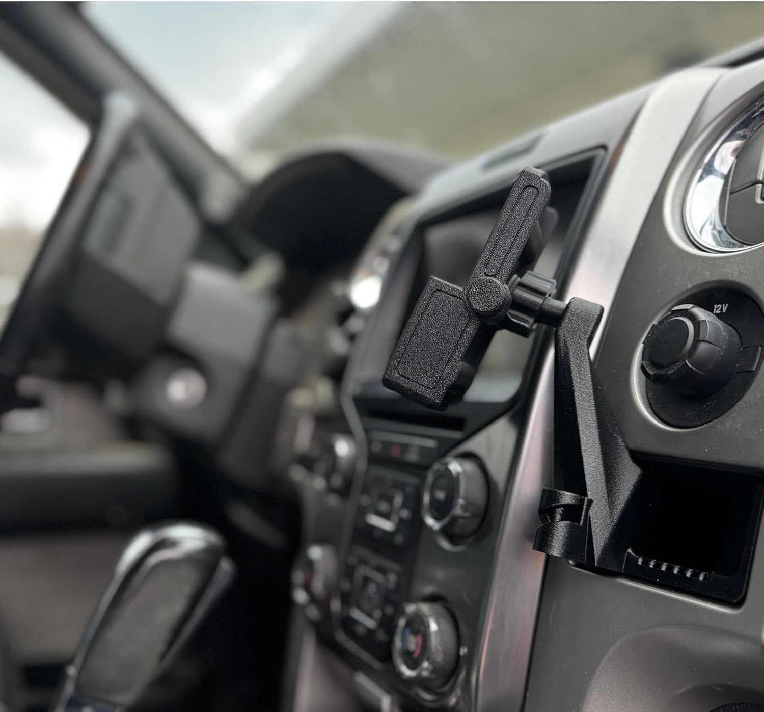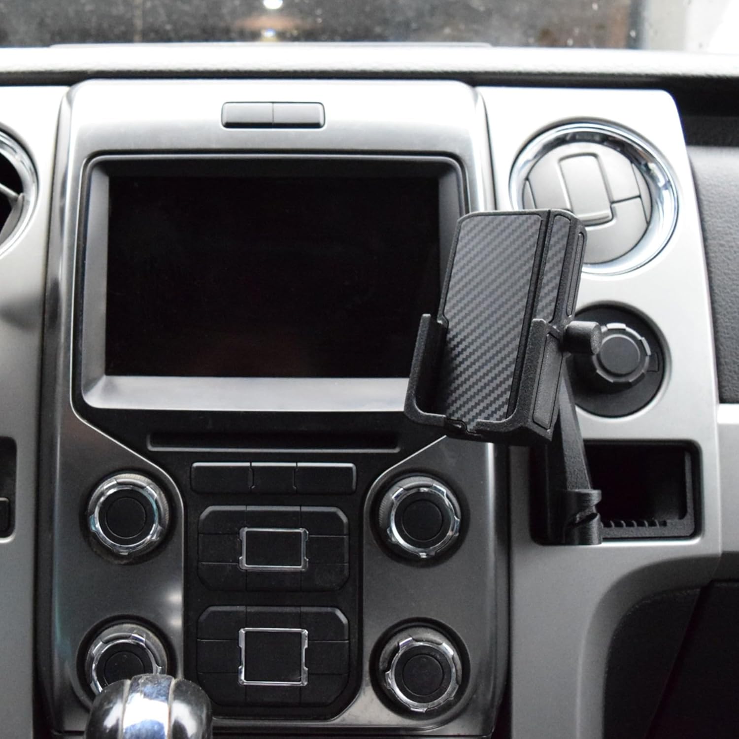 Upgrade your driving experience with this phone holder designed specifically for the Ford F-150 2009-2014 model years . Say goodbye to unsightly suction cups and hello to a sleek, secure mount that slots seamlessly into the pocket to the right of the radio. Crafted with precision, this holder keeps your phone within easy reach yet out of the way, ensuring a distraction-free drive. With its solid construction and perfect fit, you can trust your device will stay firmly in place, no matter how winding the road ahead. Elevate your car’s interior with this ingenious phone holder, engineered for the ultimate in convenience and safety.