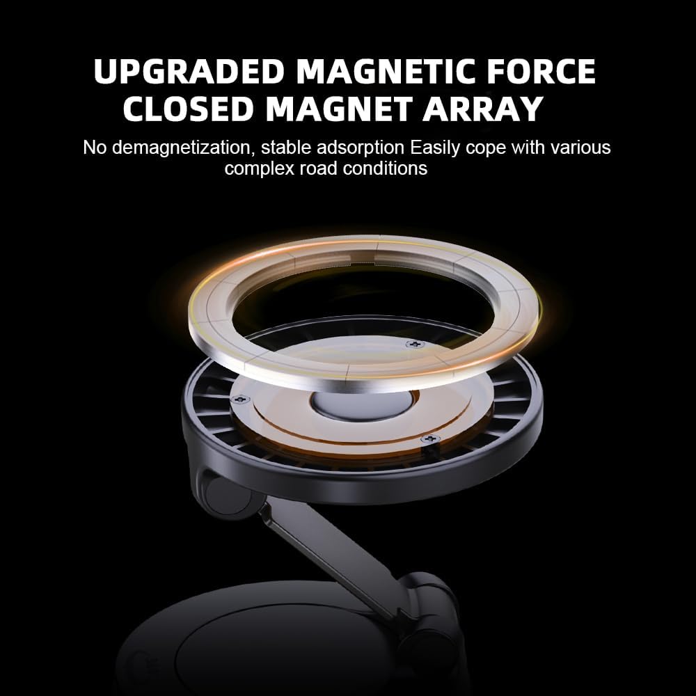 Powerful Magnetic Force, Instant Adhesion: The phone holders for your car utilizes advanced magnetic suction to ensure your phone stays firmly in place, even on bumpy roads. Even during sudden stops or rapid acceleration, car phone holder stays firmly in place,ensuring safe driving companionship.Free magnetic metal plate—compatible with any smartphone, even without built-in magnets!”