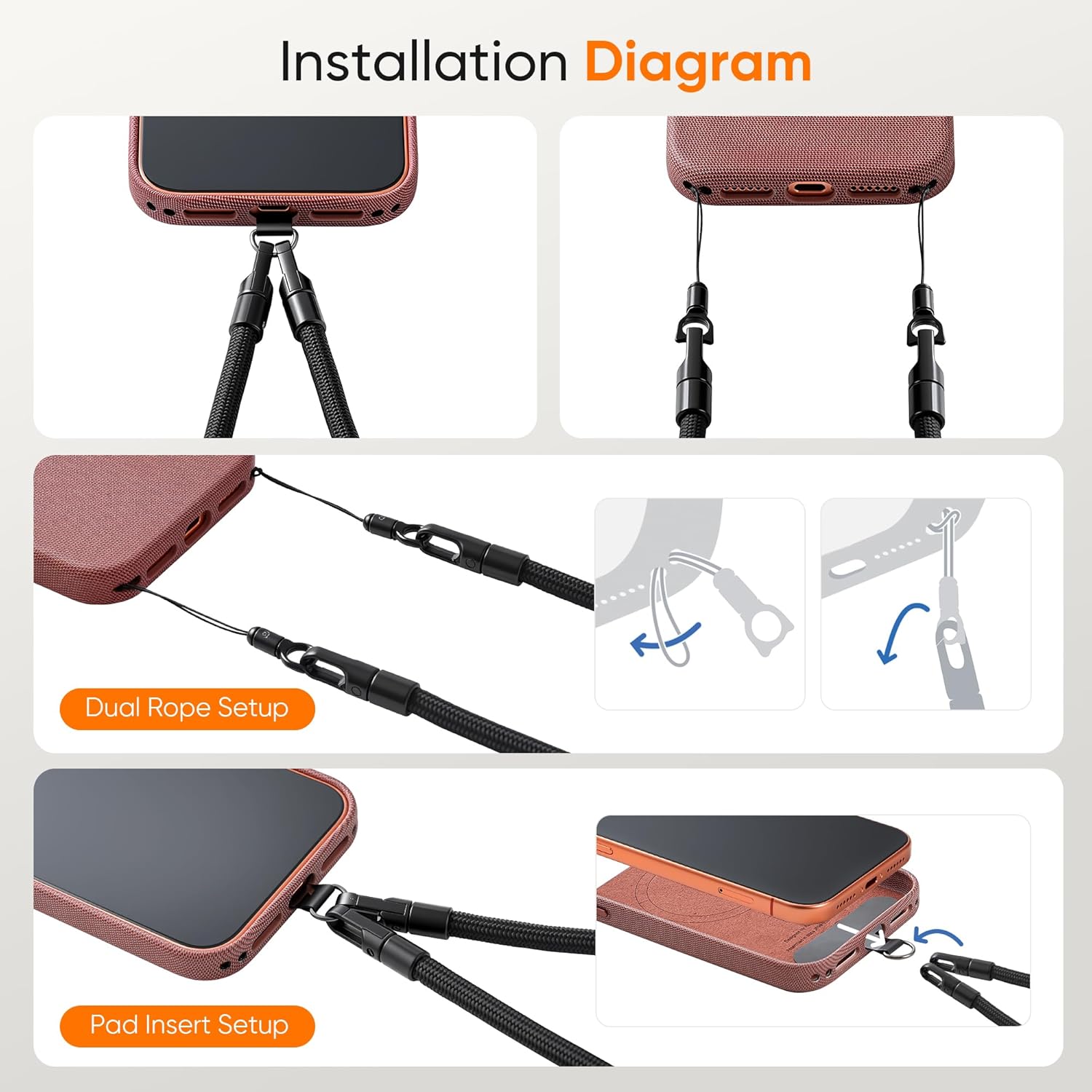 Dual Use Methods – Connect with twin loop cords through phone case holes, or use the tether tab plate for crossbody attachment; Note: phone case is not included
