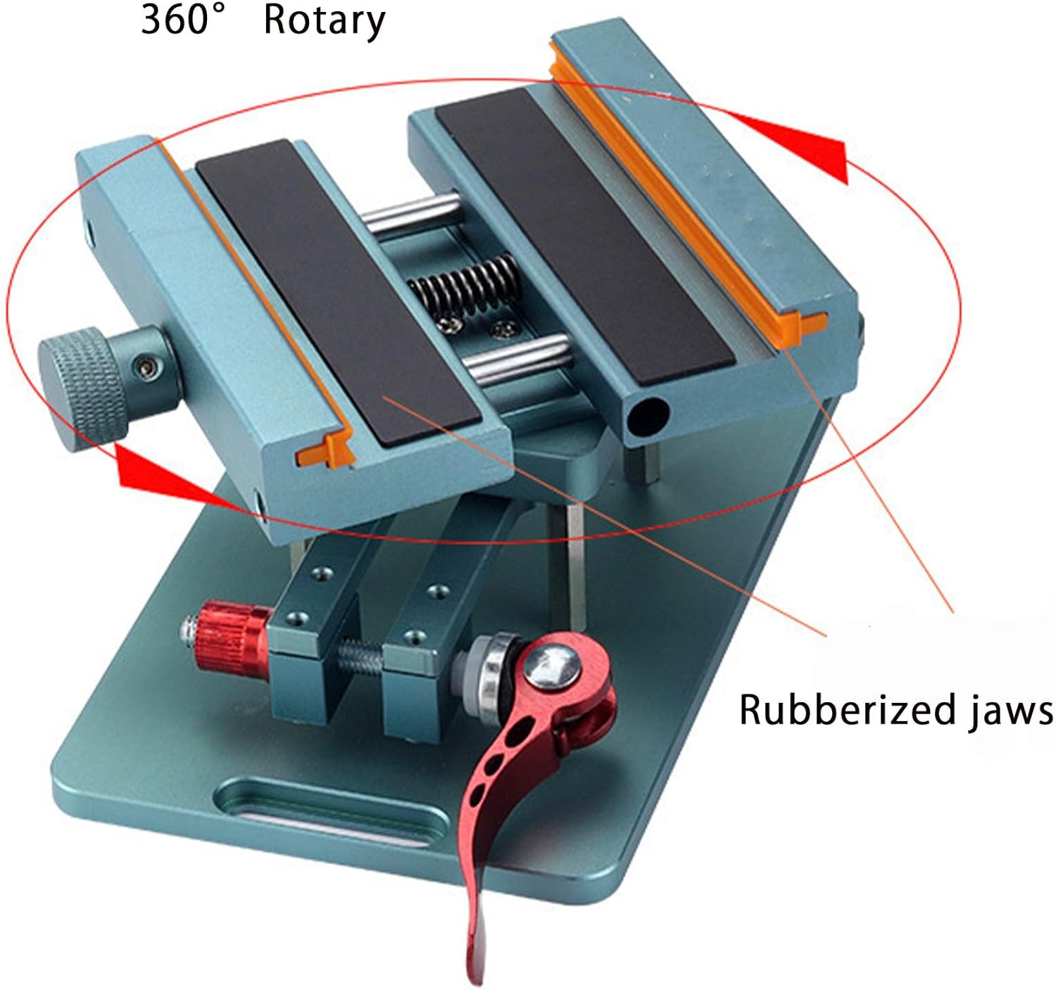 A lockable rotary clamp is ideal for small phone repairs with the clamps opening to a maximum width of 88.5mm.