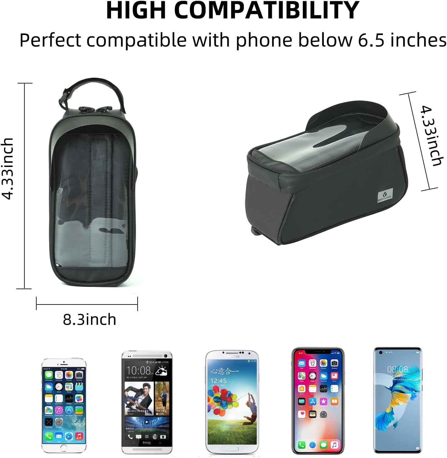 High Sensitive Touch Screen: The bike phone bag has a TPU high-sensitivity touch screen window fits phone under 6.5″. The baffle on the front of the transparent window can block part of the sunlight, making the phone screen easier to se