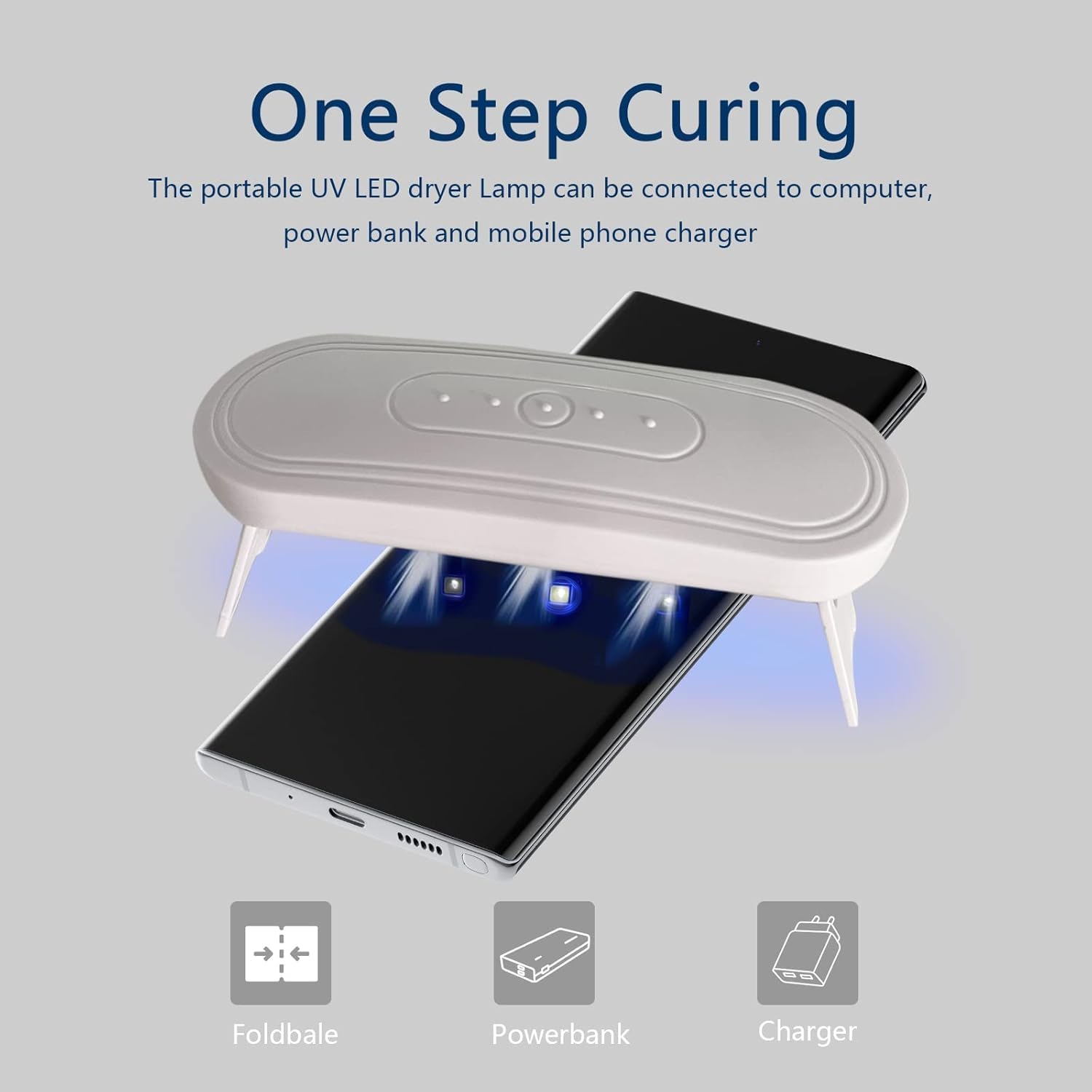 USB Port Design LED Lamp: All light beads adopt advanced technology,the portable UV LED dryer Lamp can be connected to computer, power bank and mobile phone charger, which makes to do your Phone Repair more convenient.The light is closer to white light, no harm to your eyes and skin.4-5W power light uniform irradiation watch screen,faster curing,Turn on the lamp and irradiate the screen back and forth.Then a few more minutes for the glass to become permanently attached.