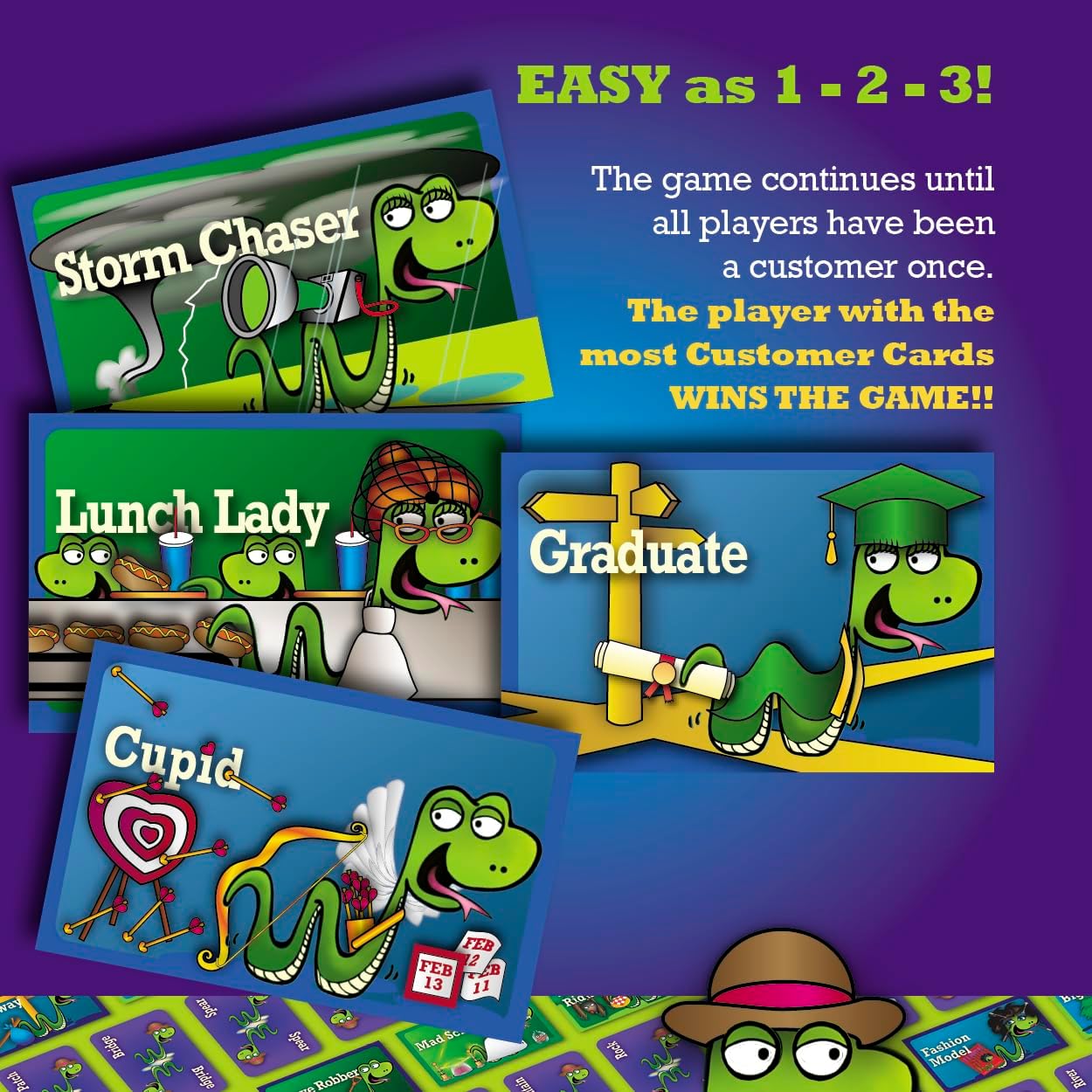 Play continues until everyone has been the customer once. The player with the most customer cards at the end of the game, wins!!