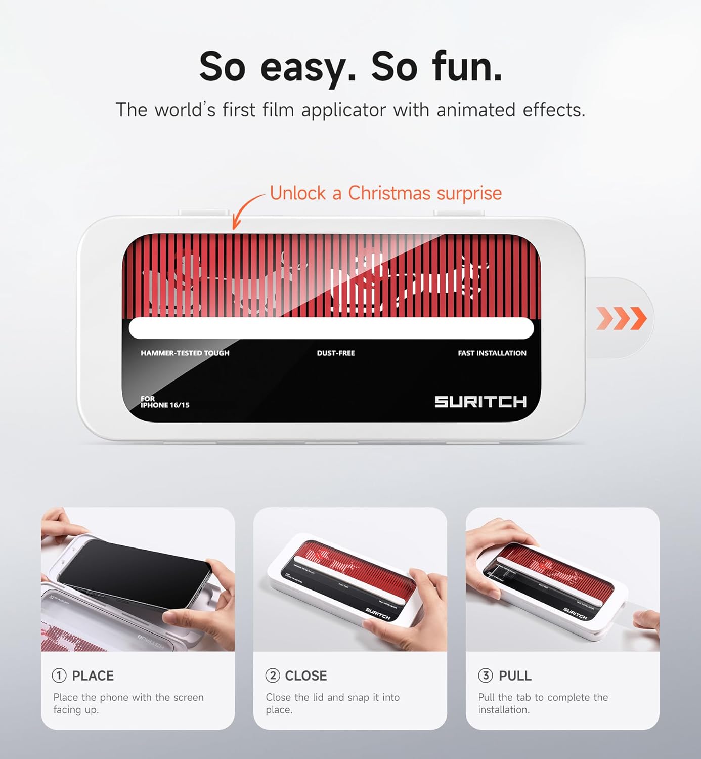 【Interesting Installation Kit】Installation has never been this easy and fun with our innovative film applicator! Simply cover and pull for a seamless fit, and as you do, a lively animation will play in the window for an unexpected touch of fun