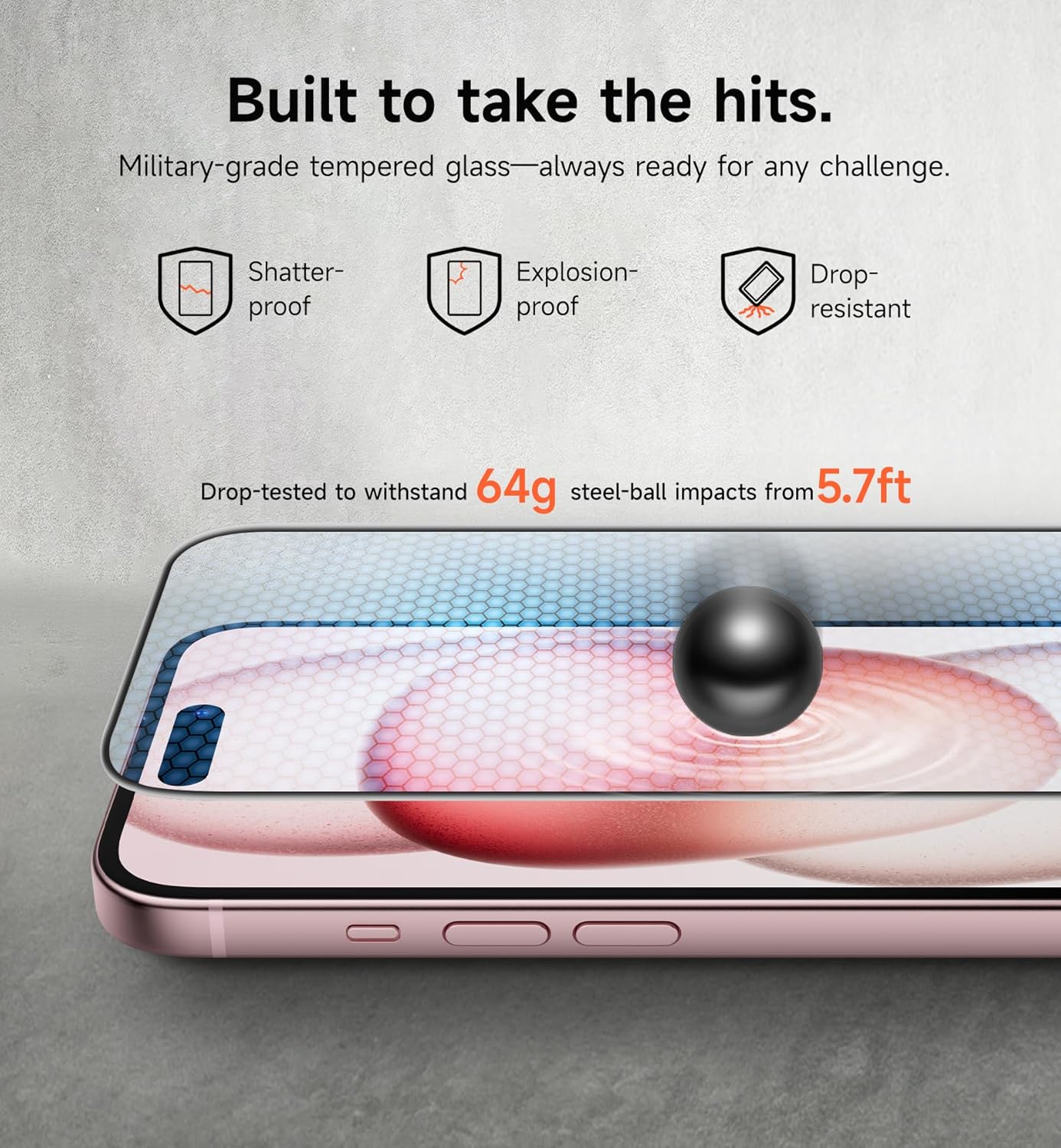 【Military-Grade Hardness】No more worries about a shattered screen! With industry-leading 9H-hardness tempered glass, our edge-to-edge screen protector provides full-coverage protection against scratches, drops, cracks, and unexpected moments