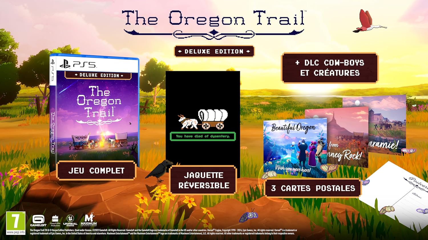 Deluxe Edition – Includes The Cowboys and Critters DLC, 3 “Wish you were here” postcards from key in-game historical locations and an Iconic Oregon Trail Reversible Coversheet that will invoke memories from days gone by