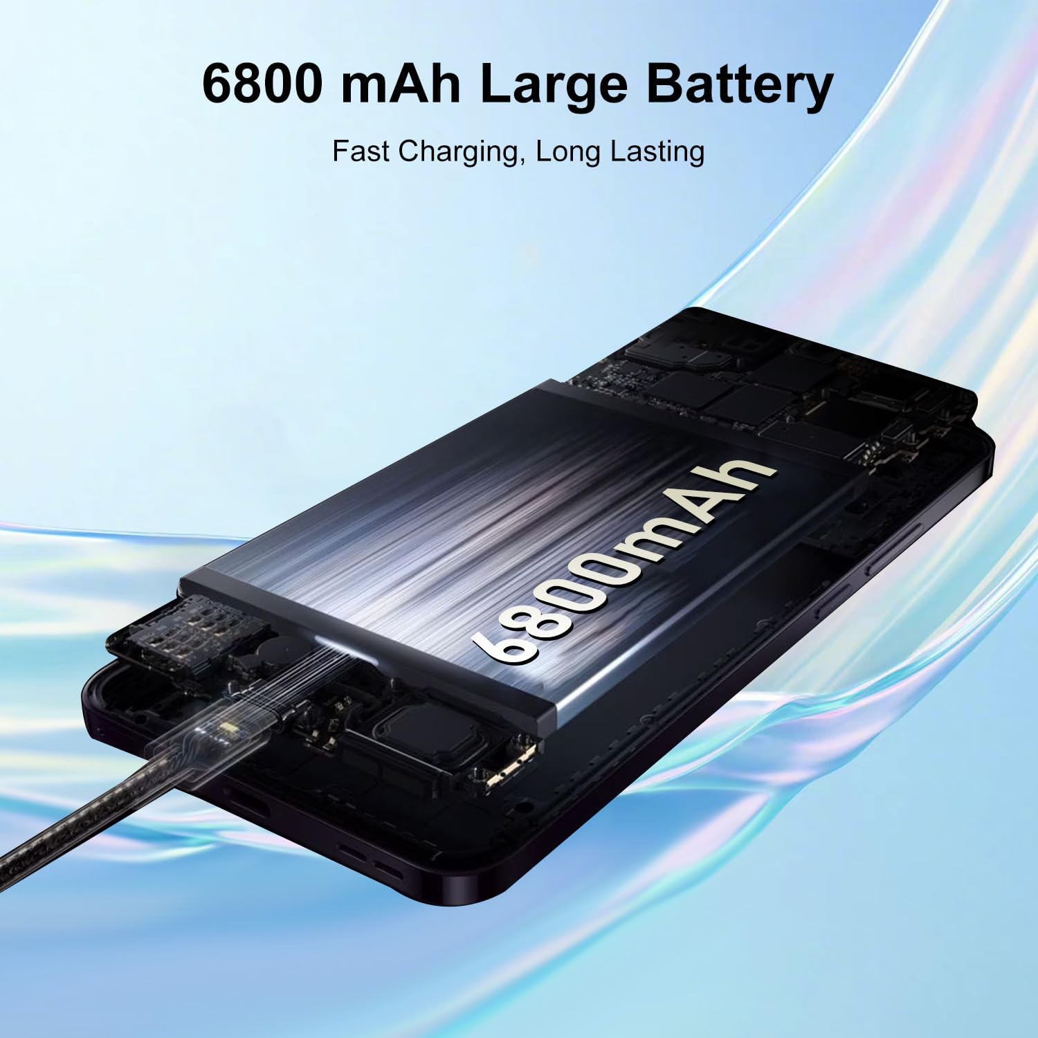 Explore the Android 13 unlocked smartphone, equipped with a powerful 6800mAh battery for exceptional battery life! Enjoy up to 24 hours of talk time, 35 hours of music playback, and a thrilling 10 hours of gaming. Intelligent AI battery management cleverly conserves power, extending standby time.