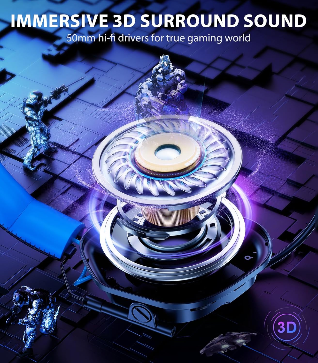 【50mm Driver, Immersive Sound】Equipped with powerful 50mm drivers, these gaming headphones deliver immersive surround sound with deep bass and crisp highs. Dynamic audio places you right inside the action. Stylish RGB lighting adds a futuristic touch to your gaming setup