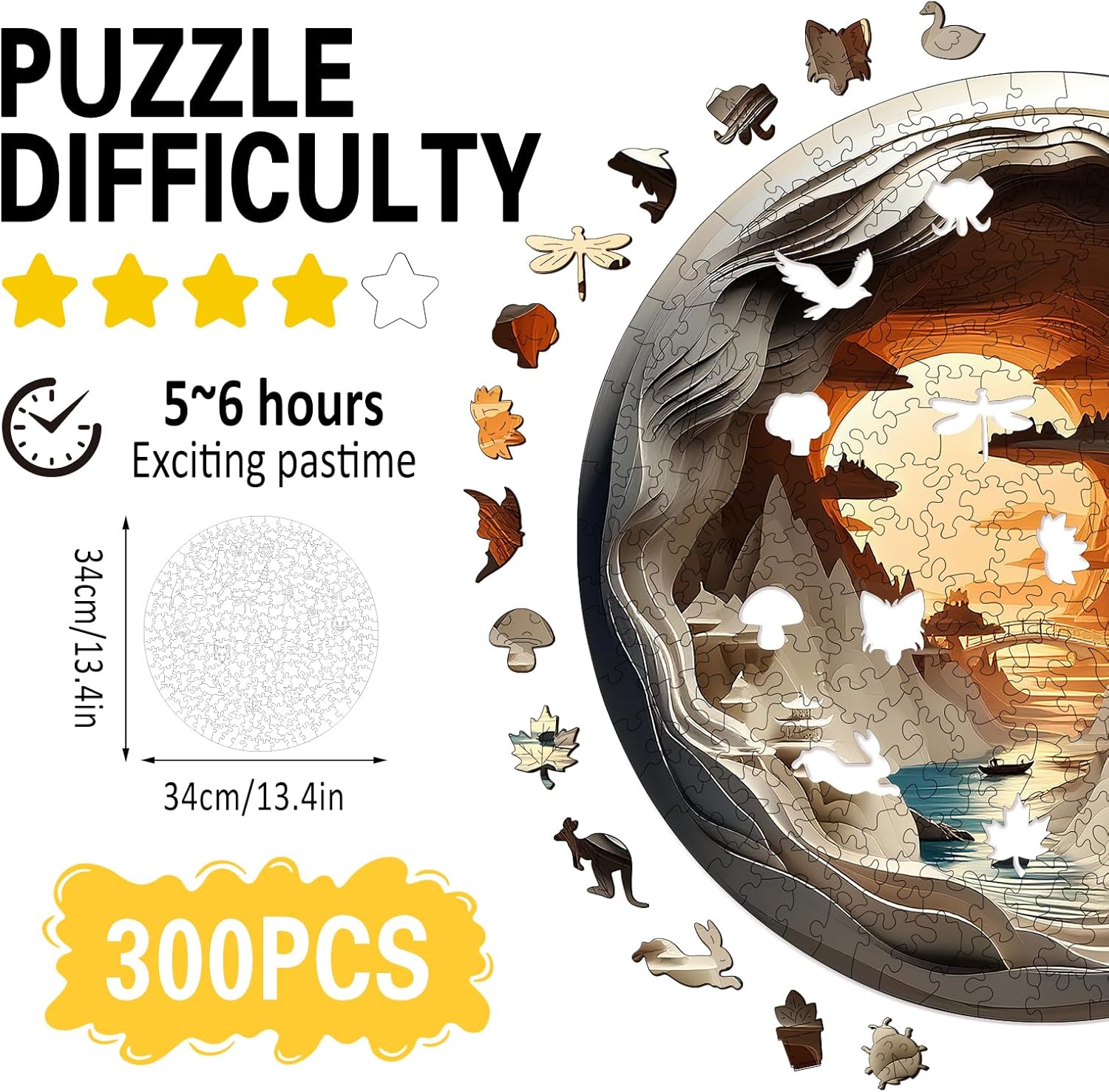 🧩【3D Visual Illusion】Crafted with irregular laser-cut wooden pieces, this puzzle can be transformed into a stunning 3D stereoscopic landscape with depth and texture after completion. Watch the flat layers stacked and transformed into a 3D masterpiece, combining art with puzzle fun!