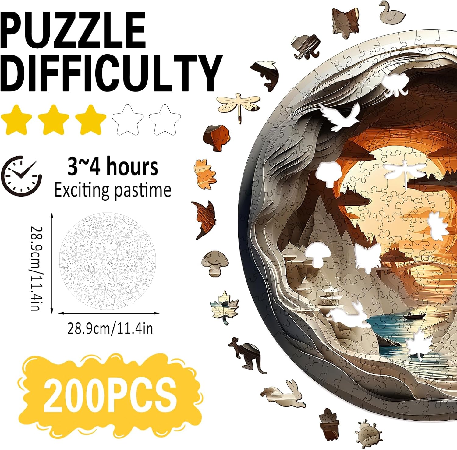Wooden Puzzles for Adults & Teens, 100/200/300/500 Piece Laser Cut Cave Landscape Jigsaw Puzzle, Challenging Home Decor Art, Unique Gifts for Women Men (M-200pcs)